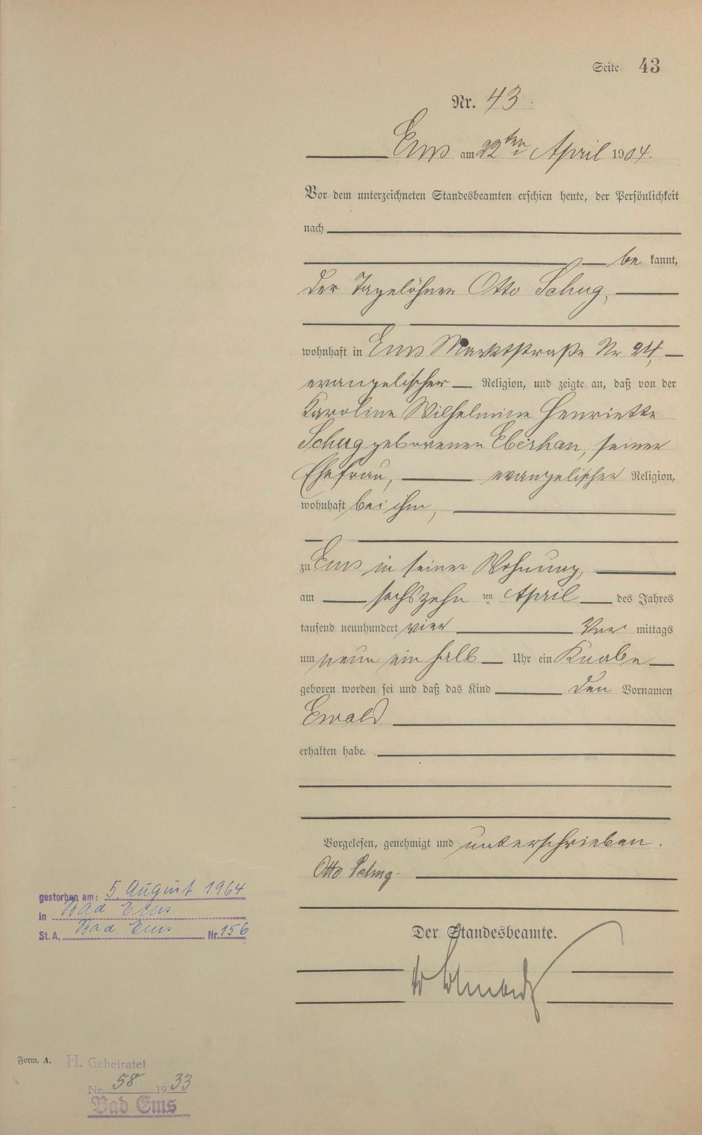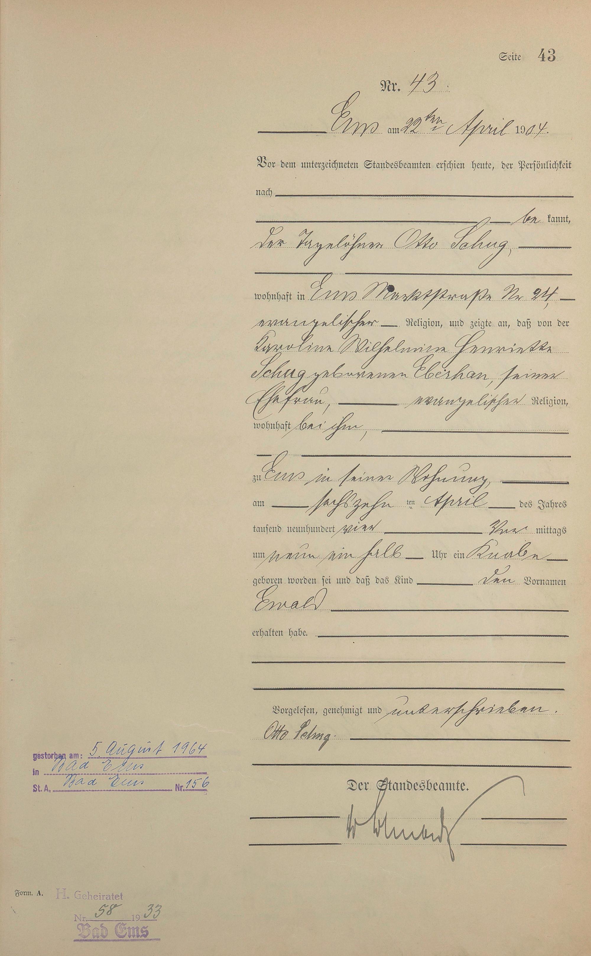 Geburtsregister 1904