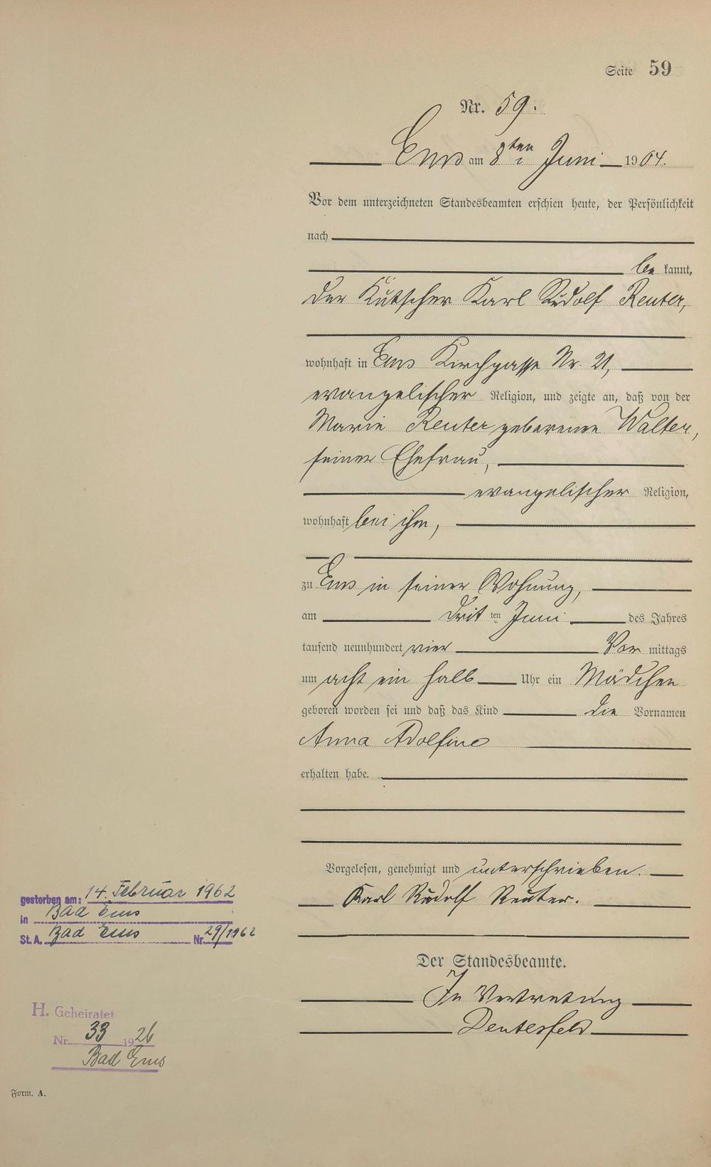 Geburtsregister 1904