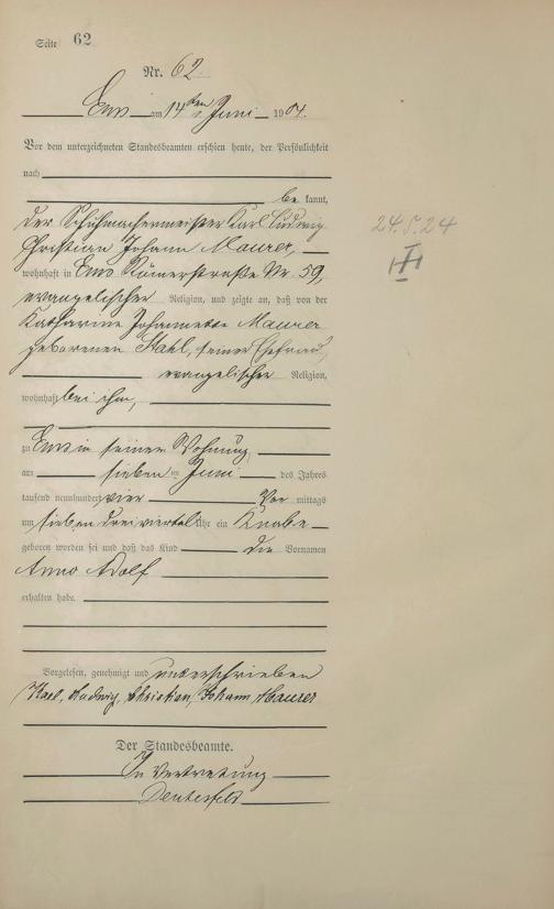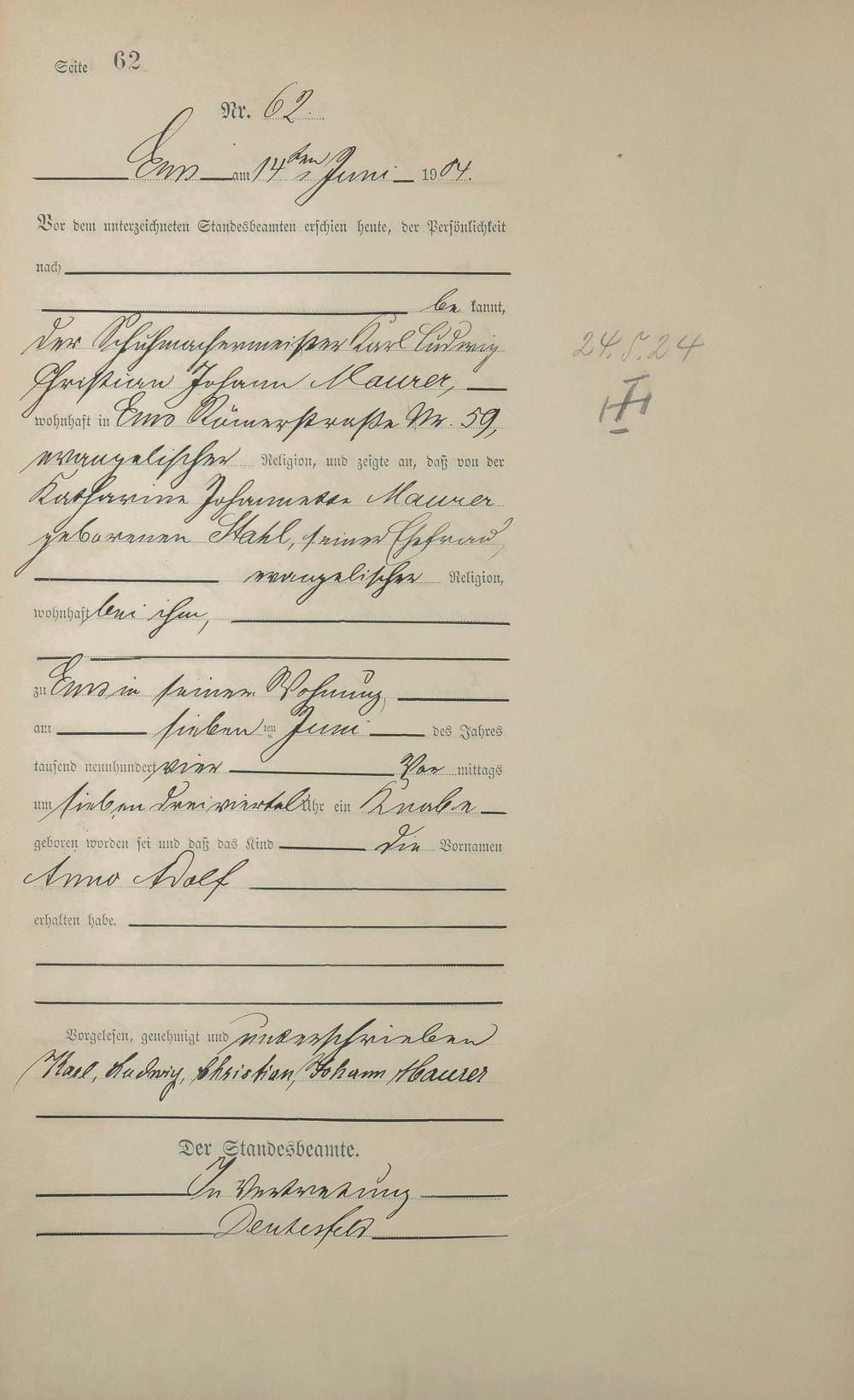 Geburtsregister 1904