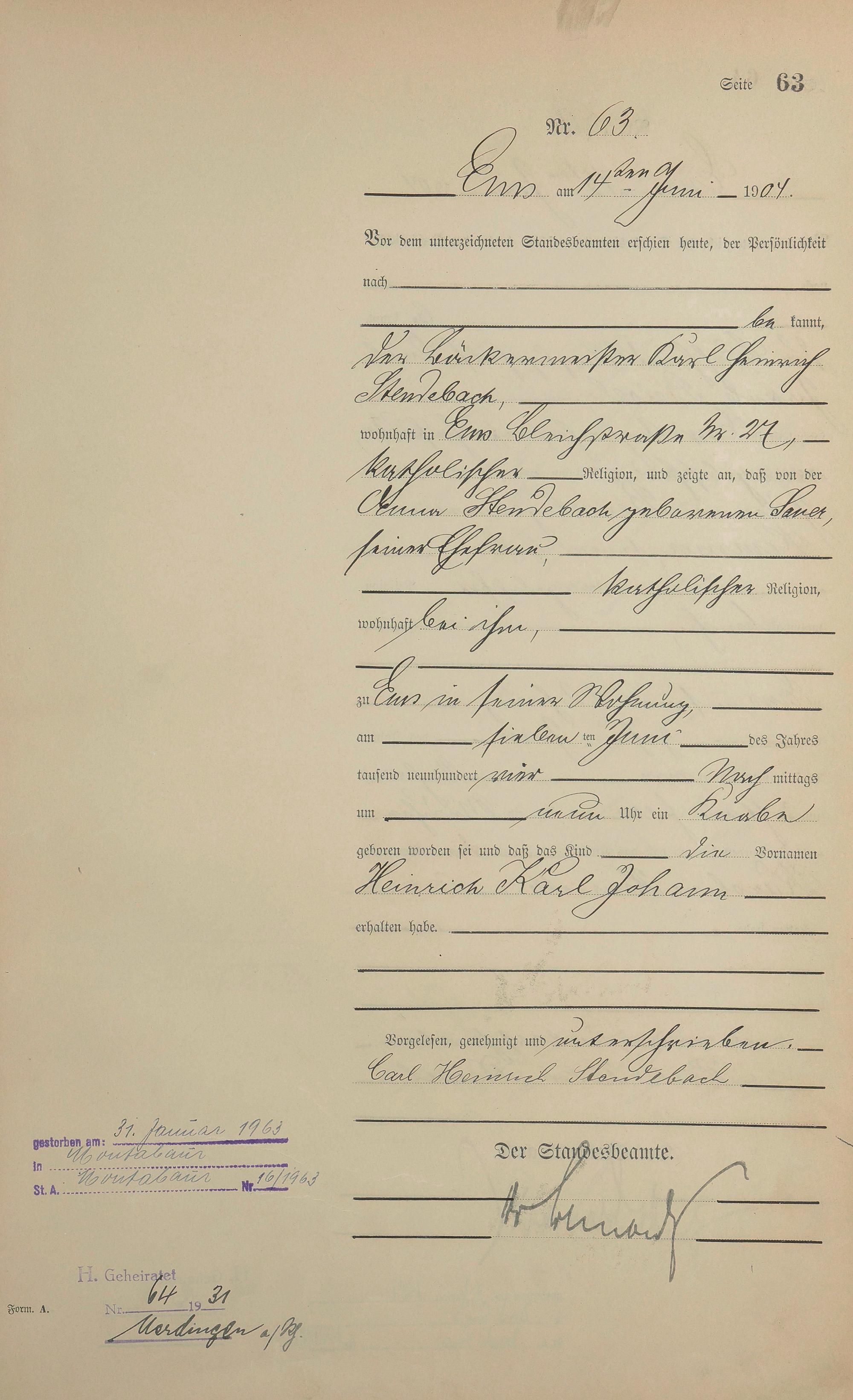 Geburtsregister 1904