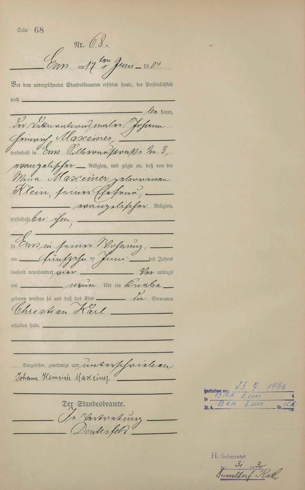 Geburtsregister 1904