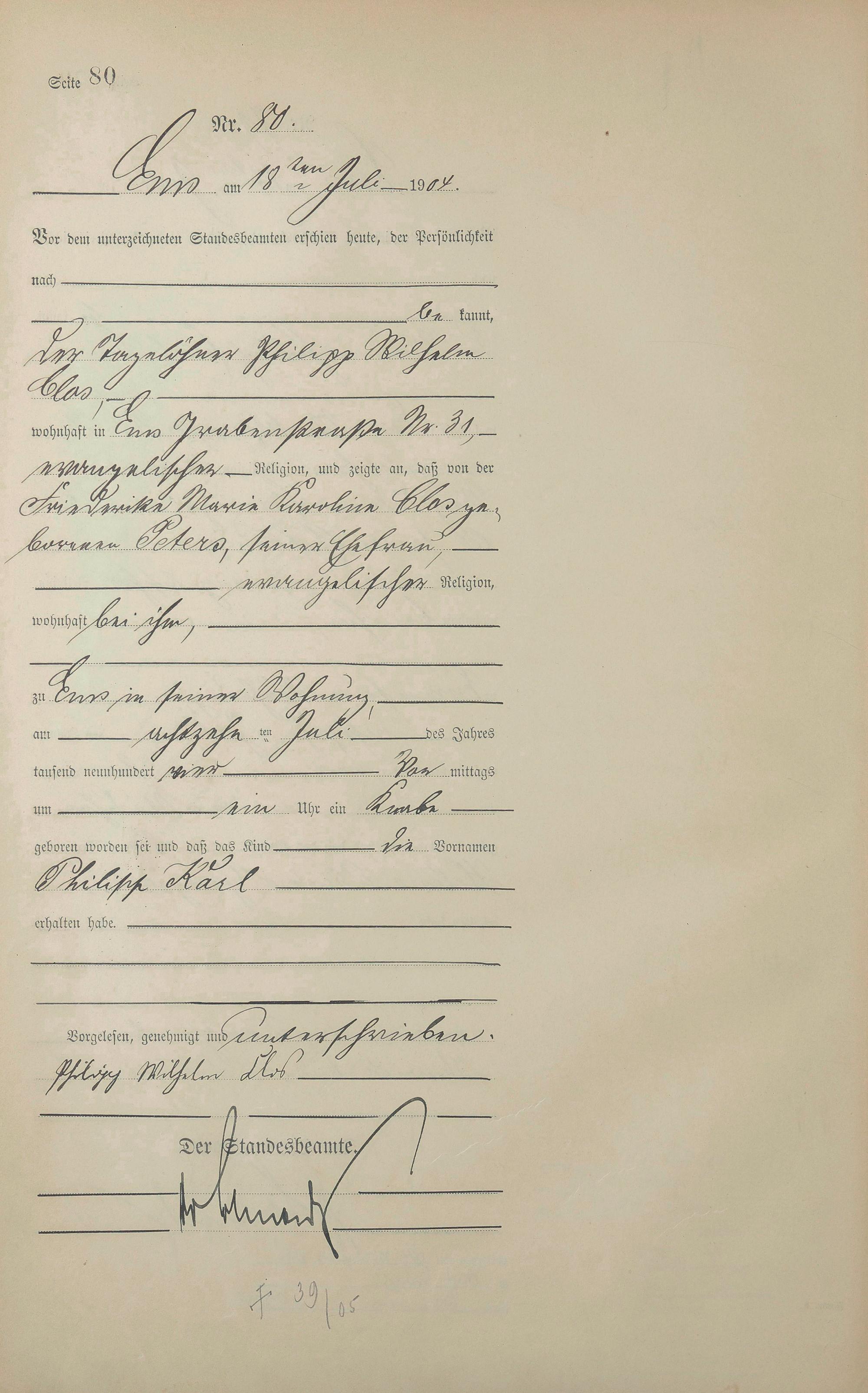 1280: Geburtsregister 1904