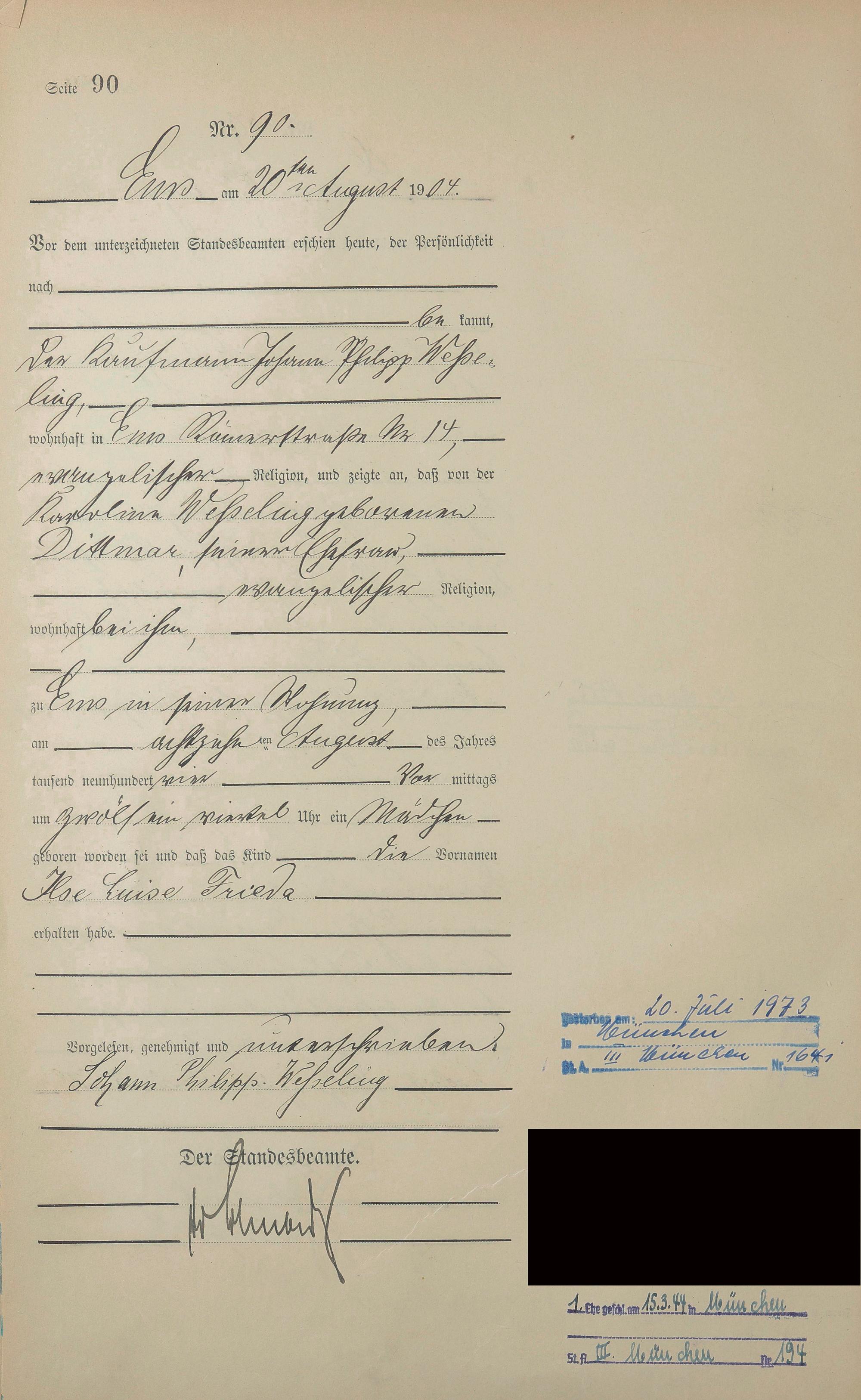 Geburtsregister 1904