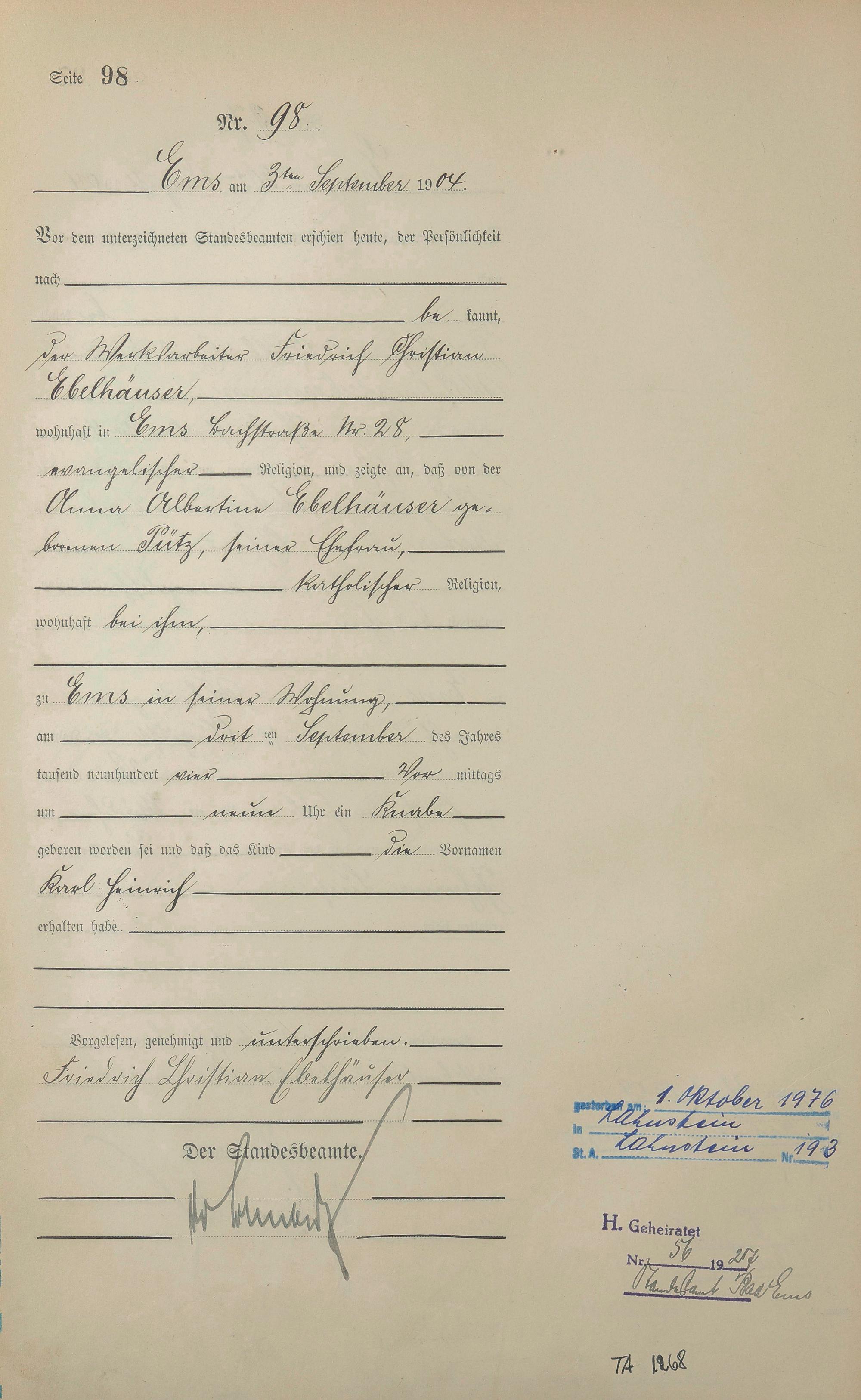 1280: Geburtsregister 1904