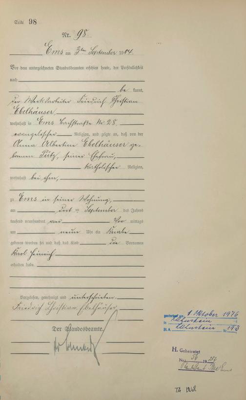 Geburtsregister 1904