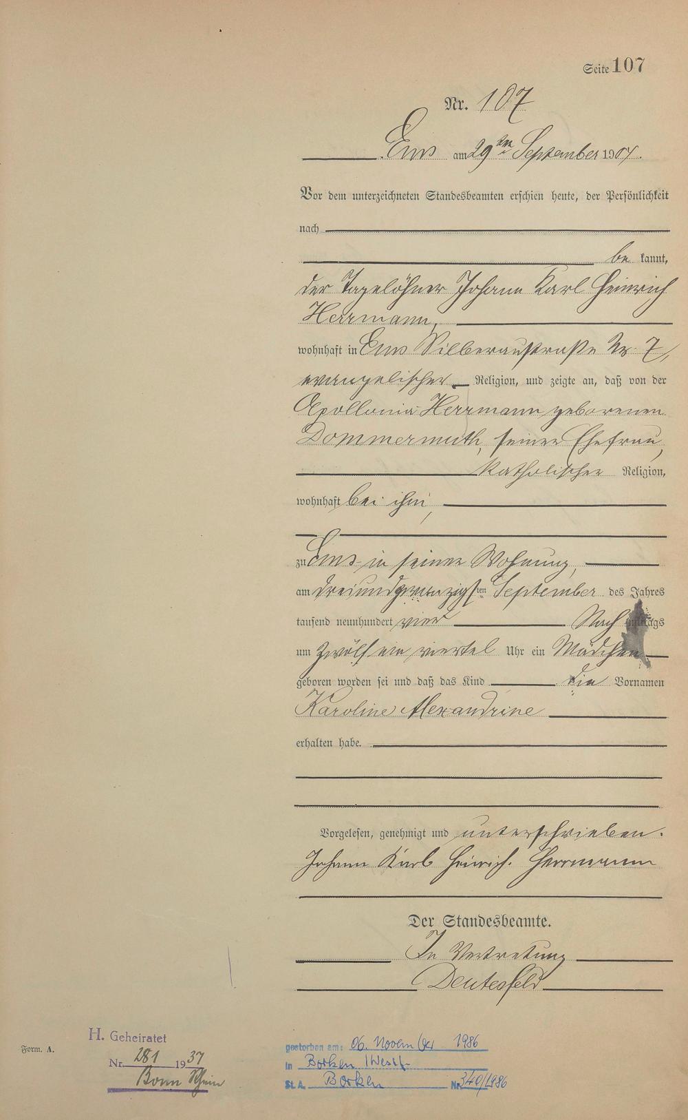 Geburtsregister 1904