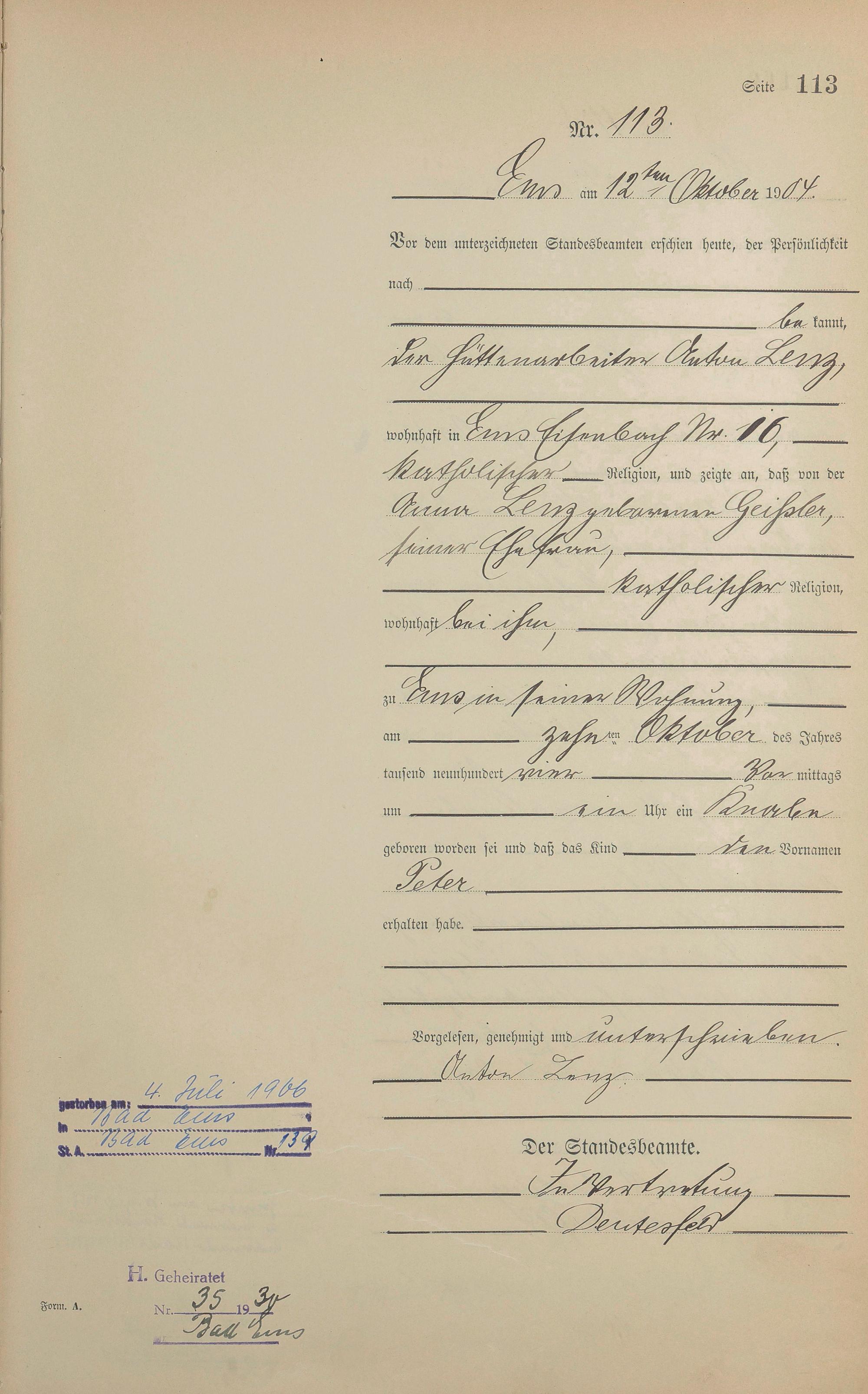 Geburtsregister 1904