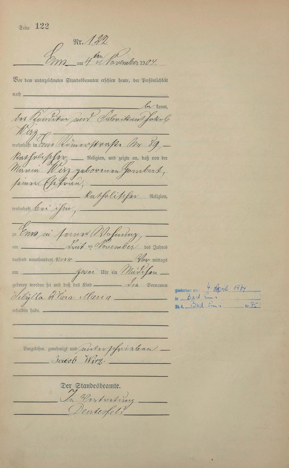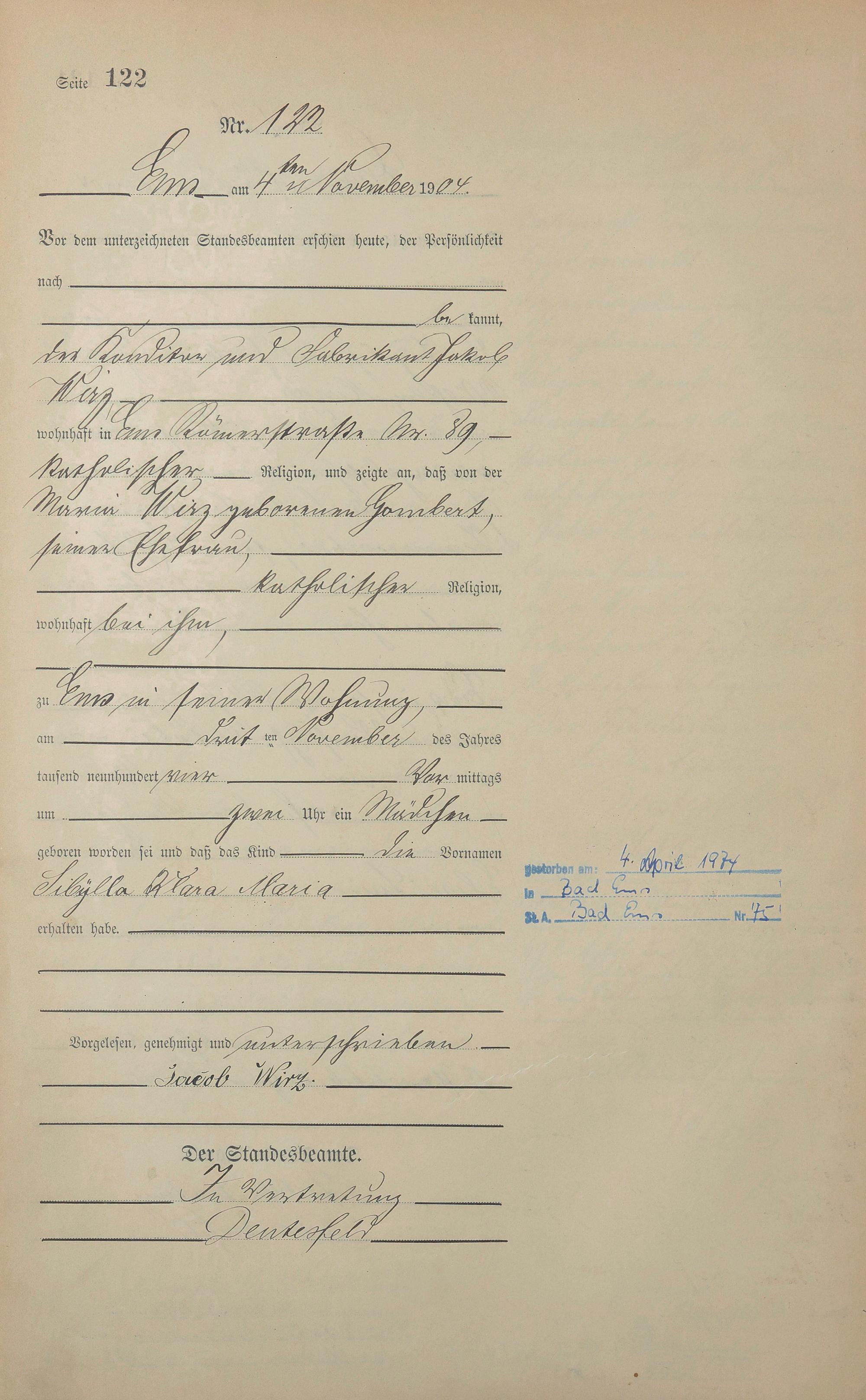 Geburtsregister 1904