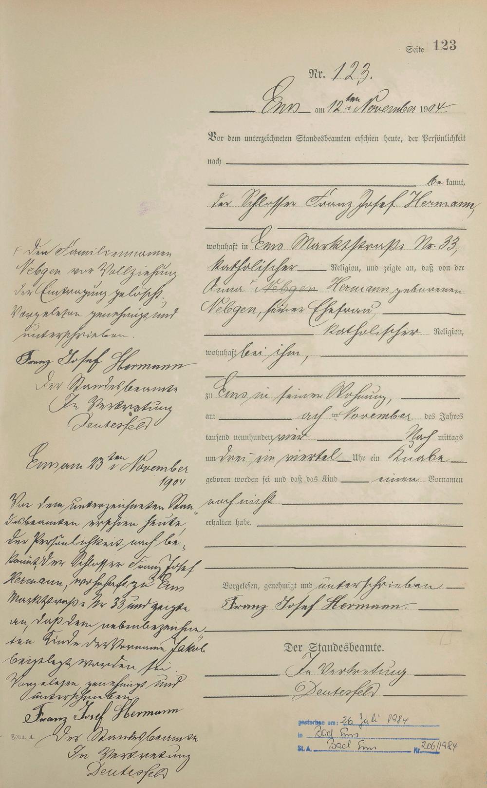 Geburtsregister 1904
