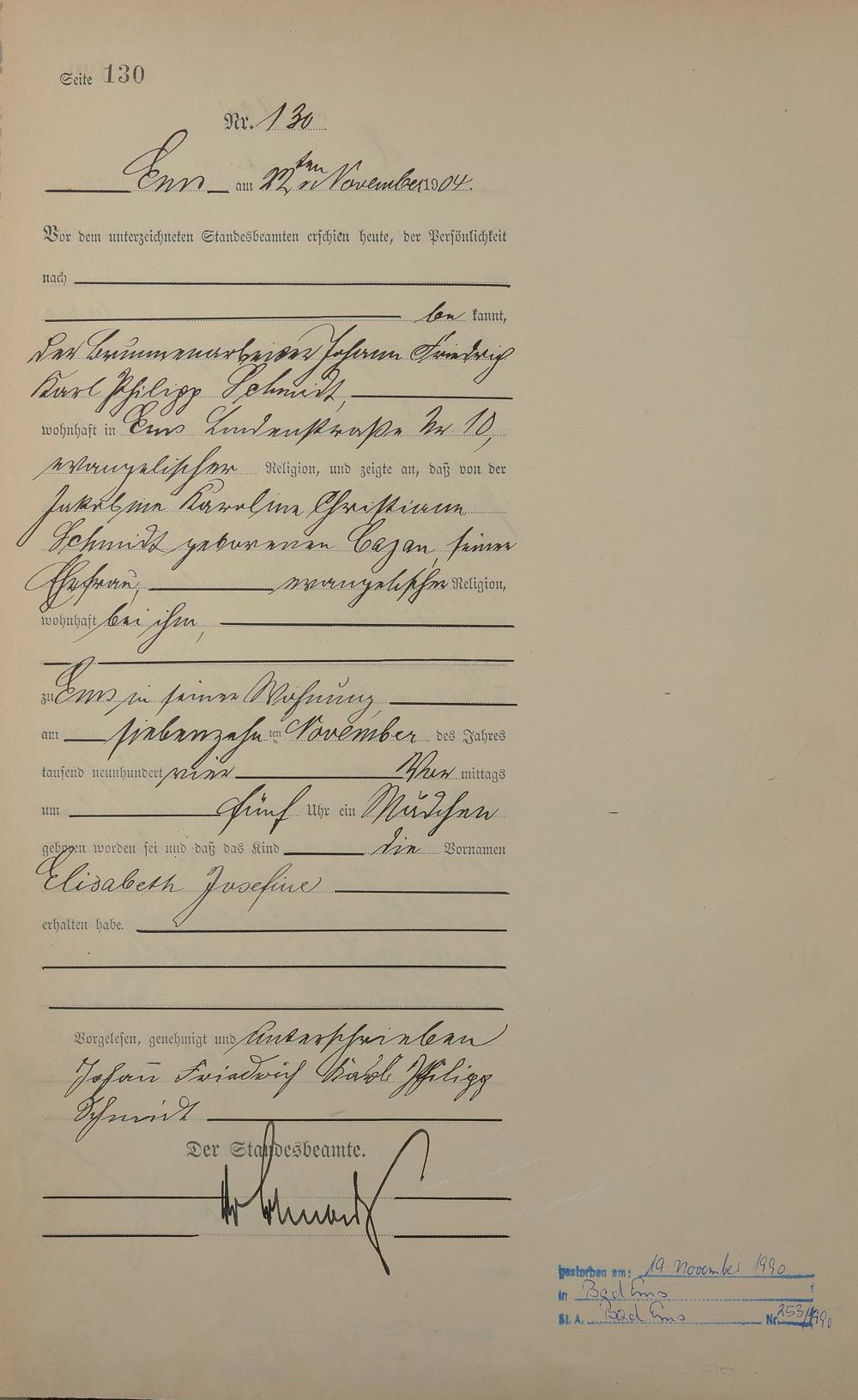 Geburtsregister 1904