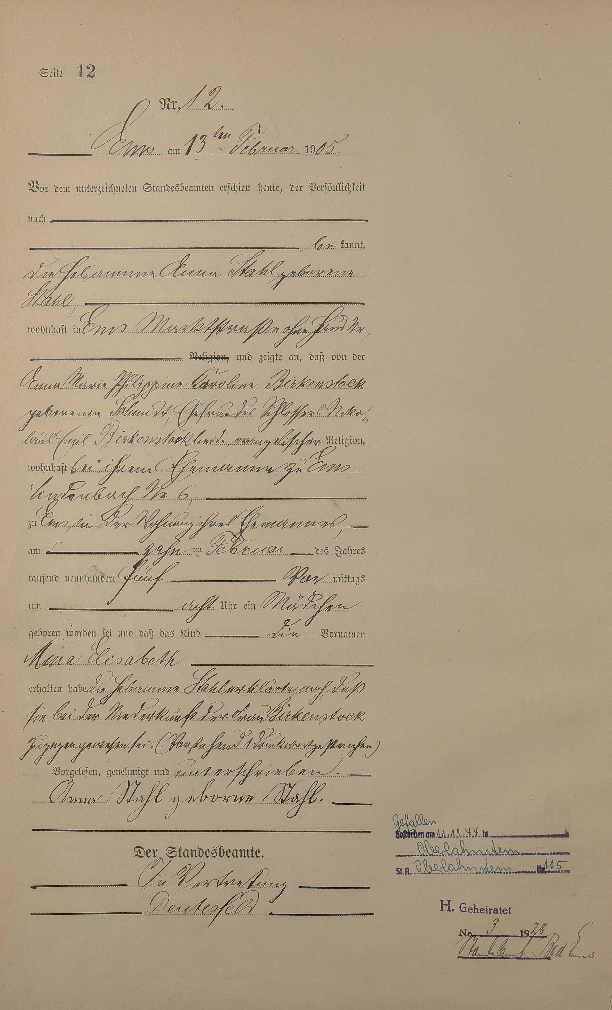 Geburtsregister 1905