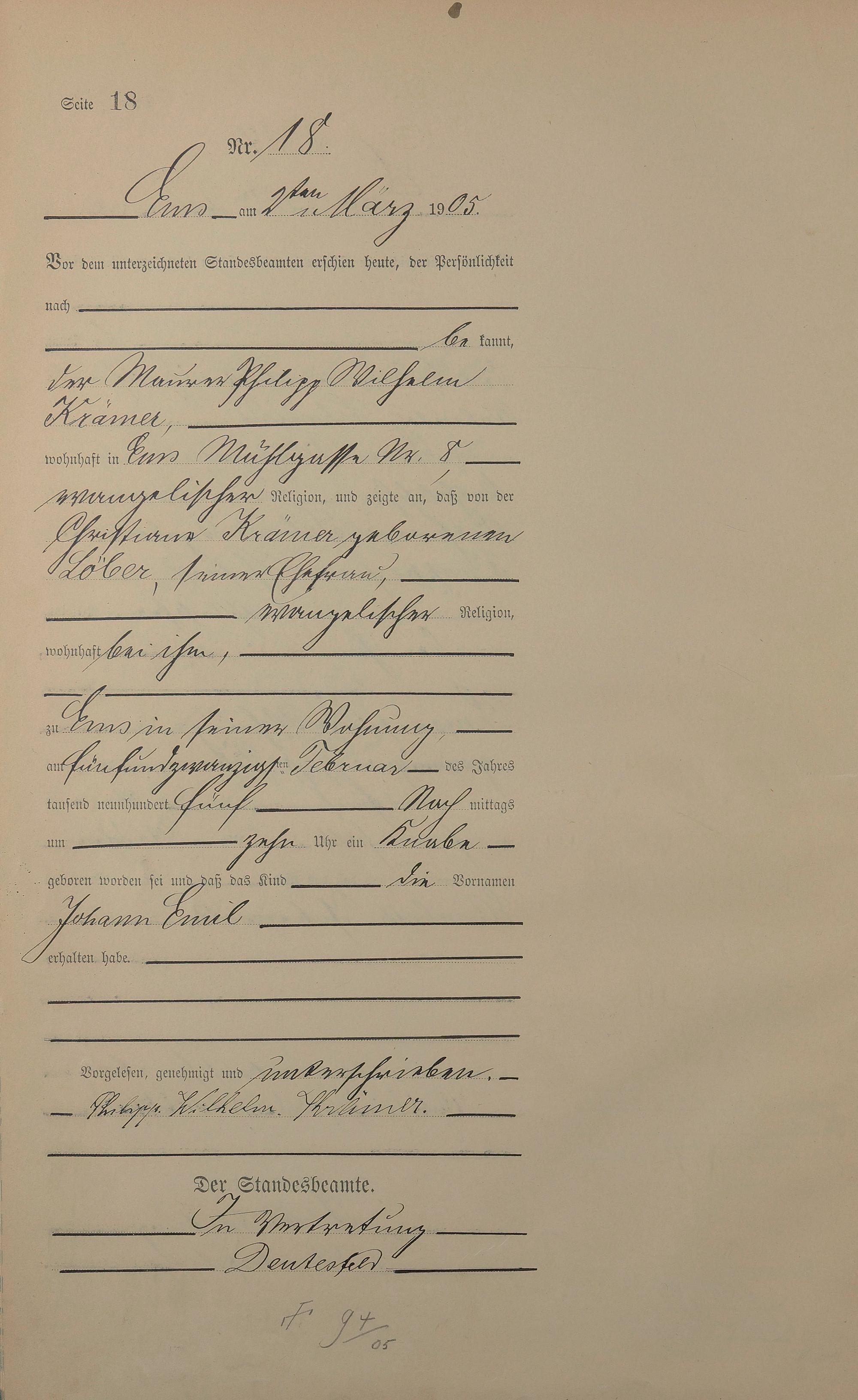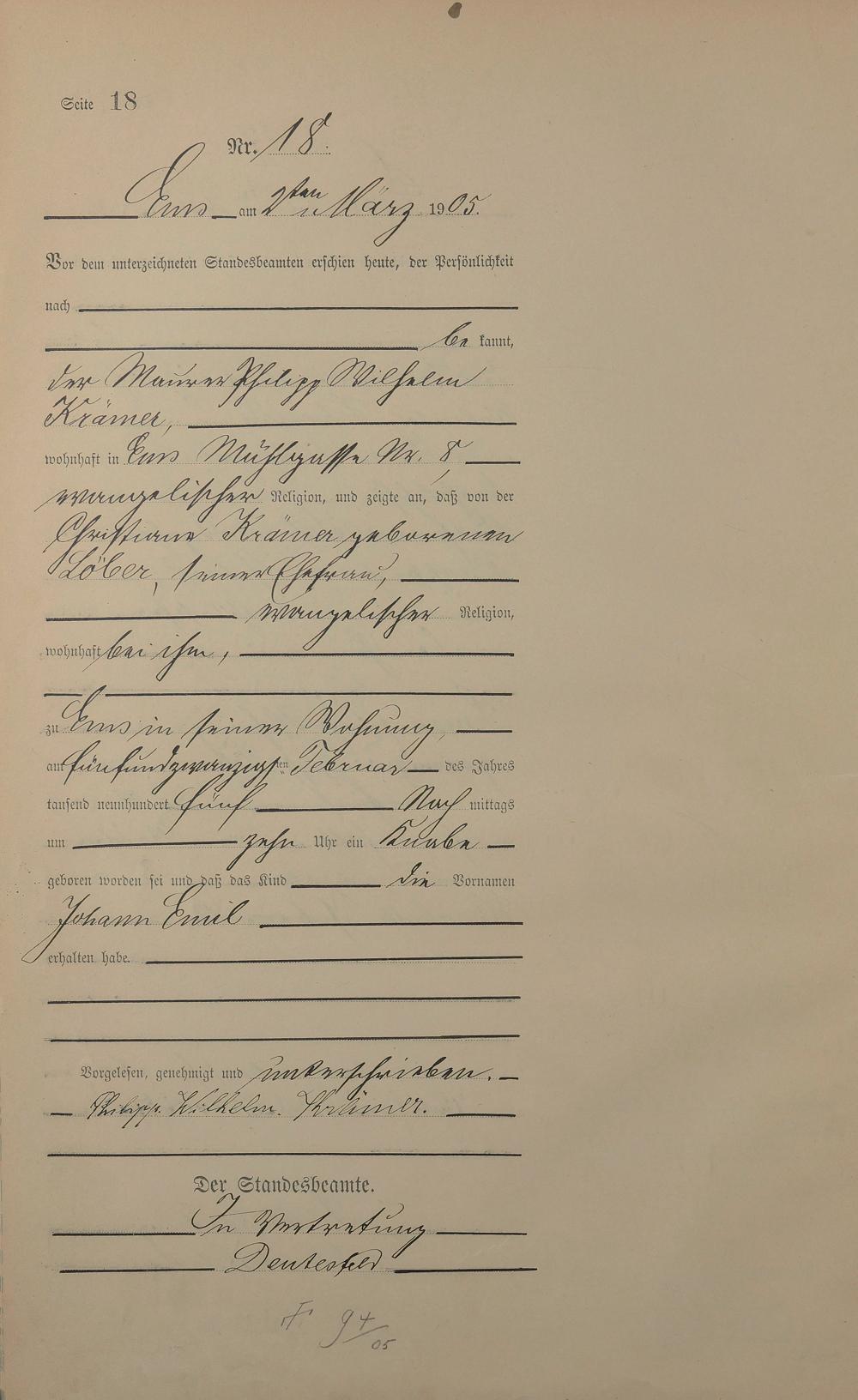 1281: Geburtsregister 1905