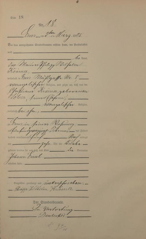 Geburtsregister 1905