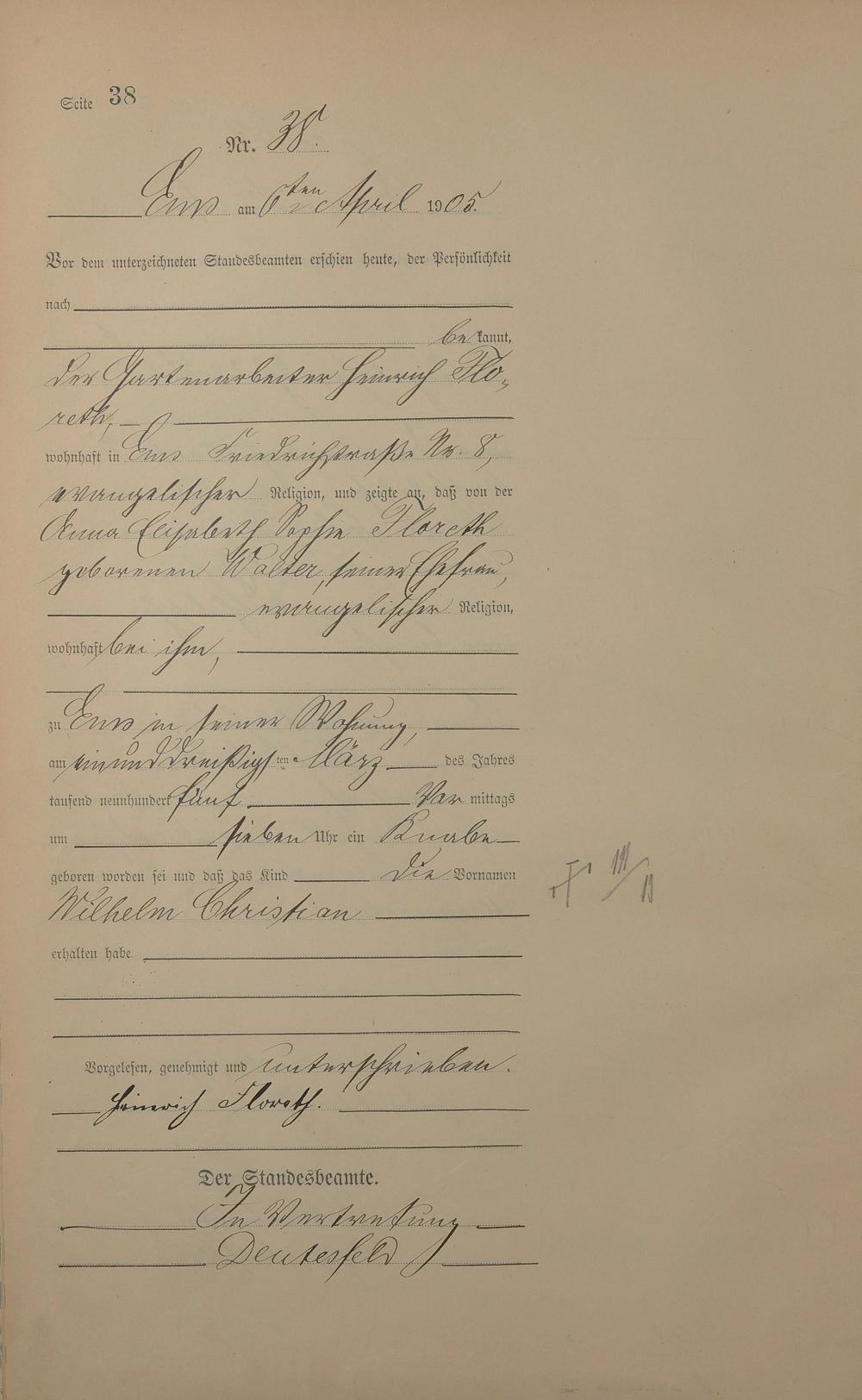 Geburtsregister 1905