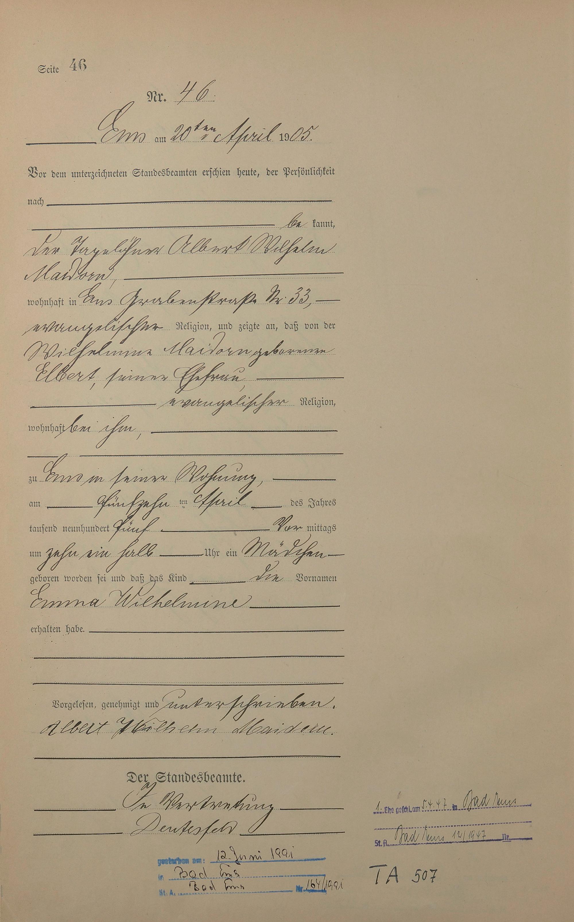 Geburtsregister 1905