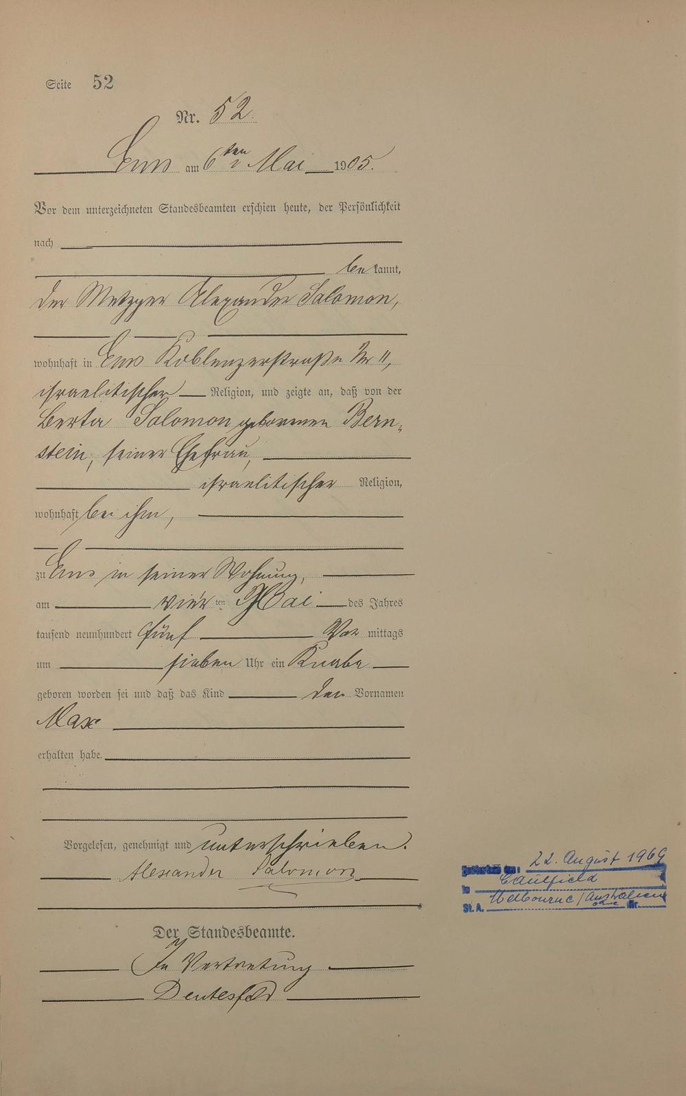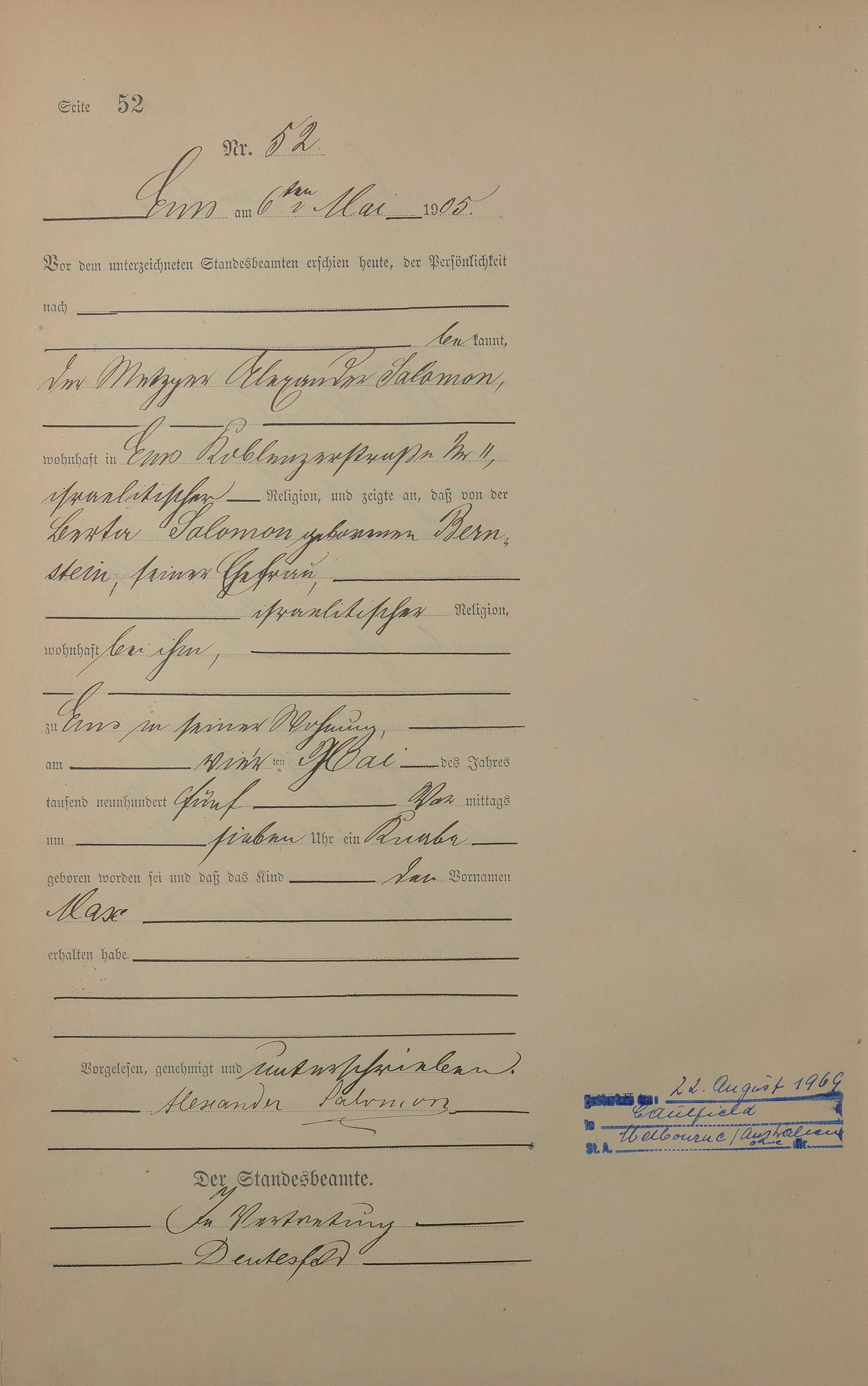 Geburtsregister 1905