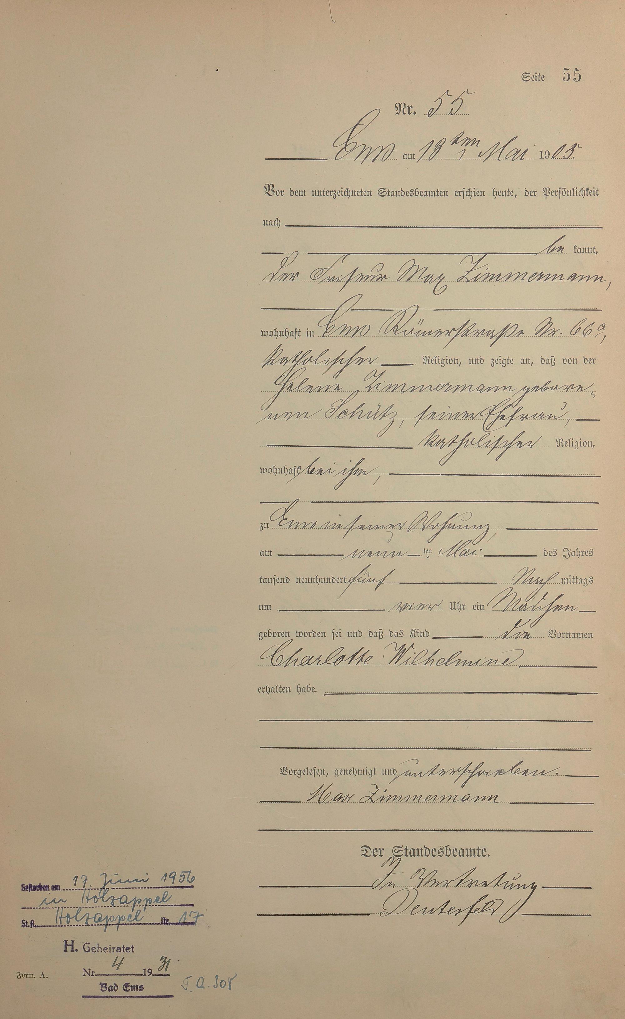 Geburtsregister 1905