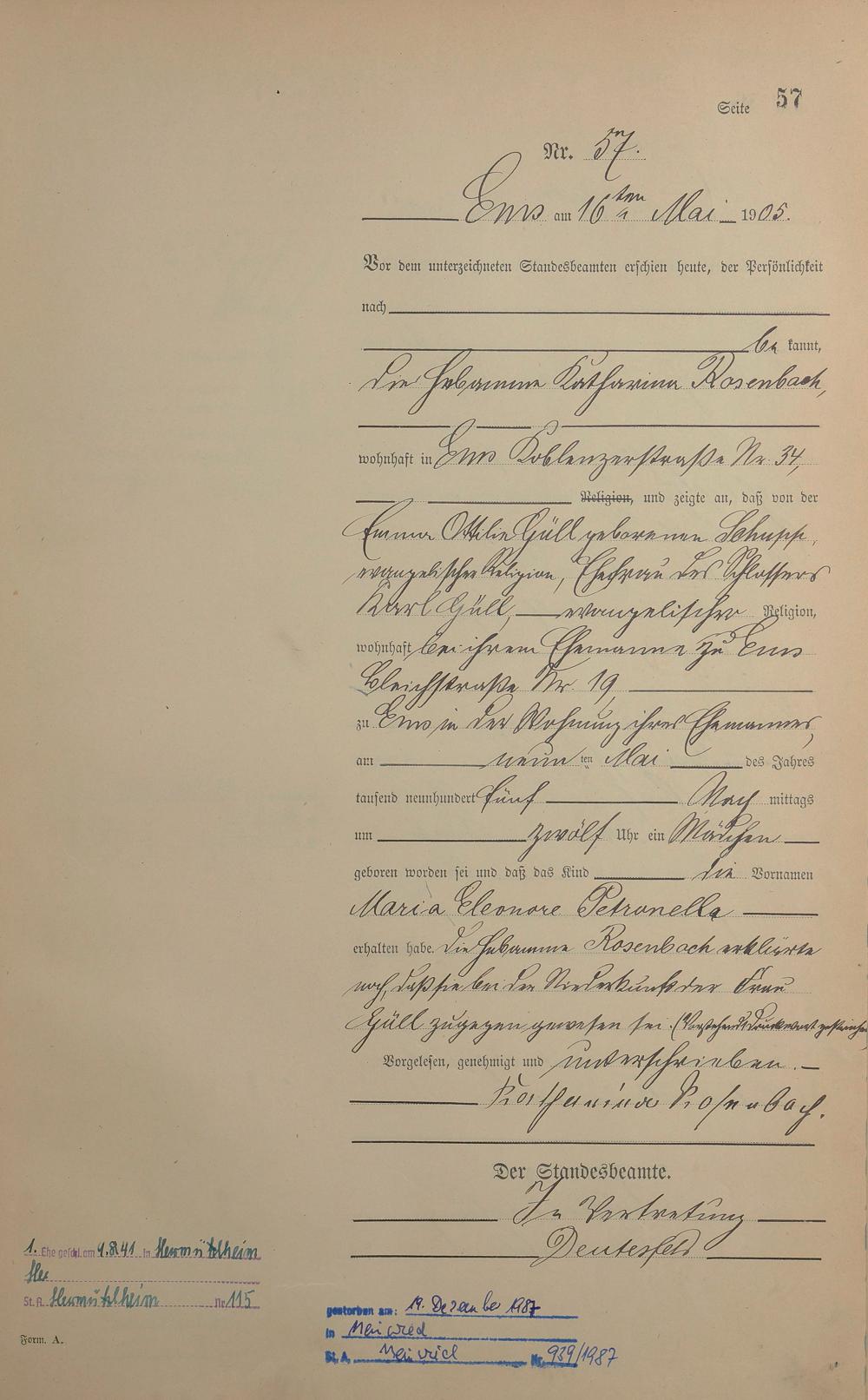 Geburtsregister 1905