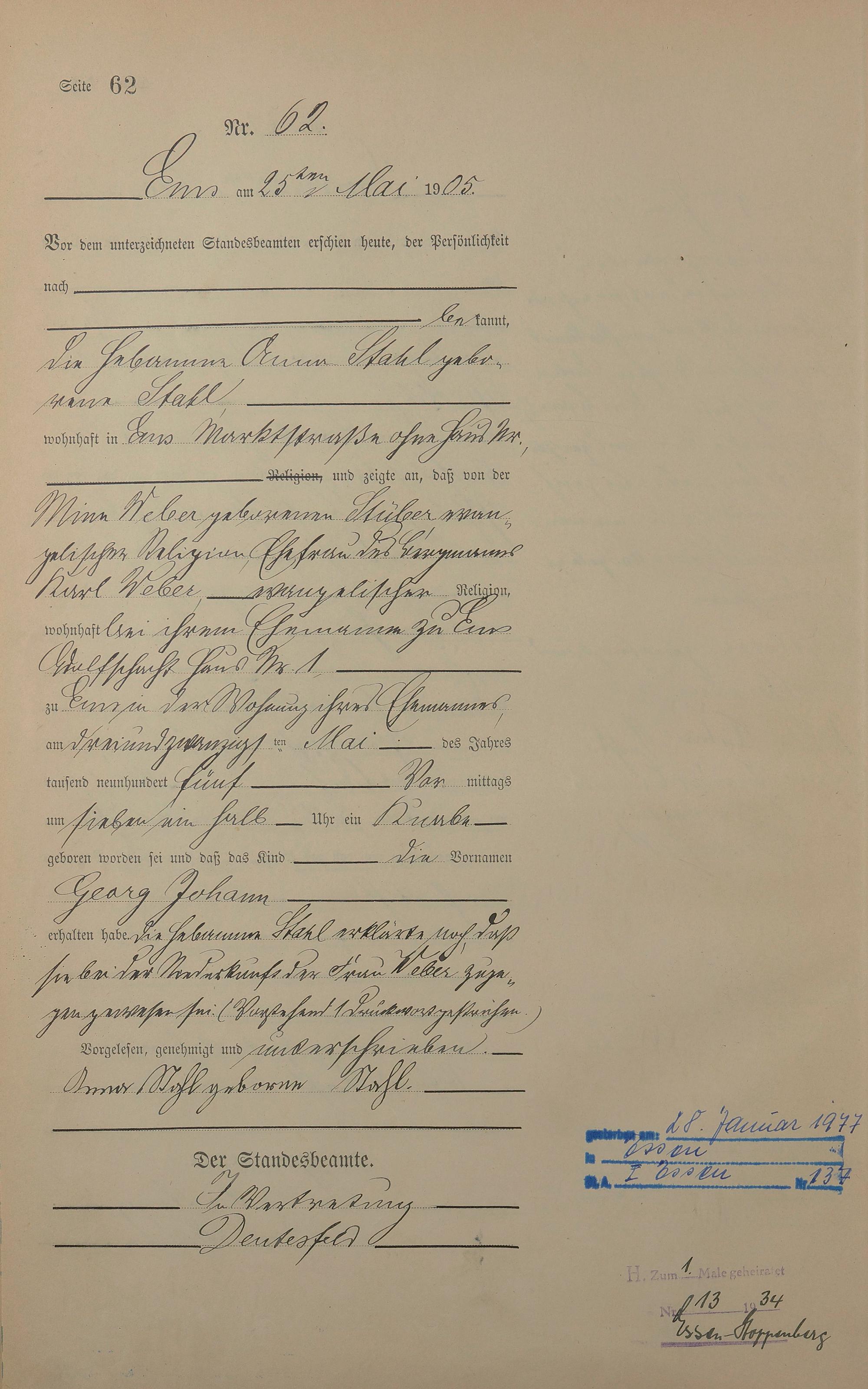Geburtsregister 1905