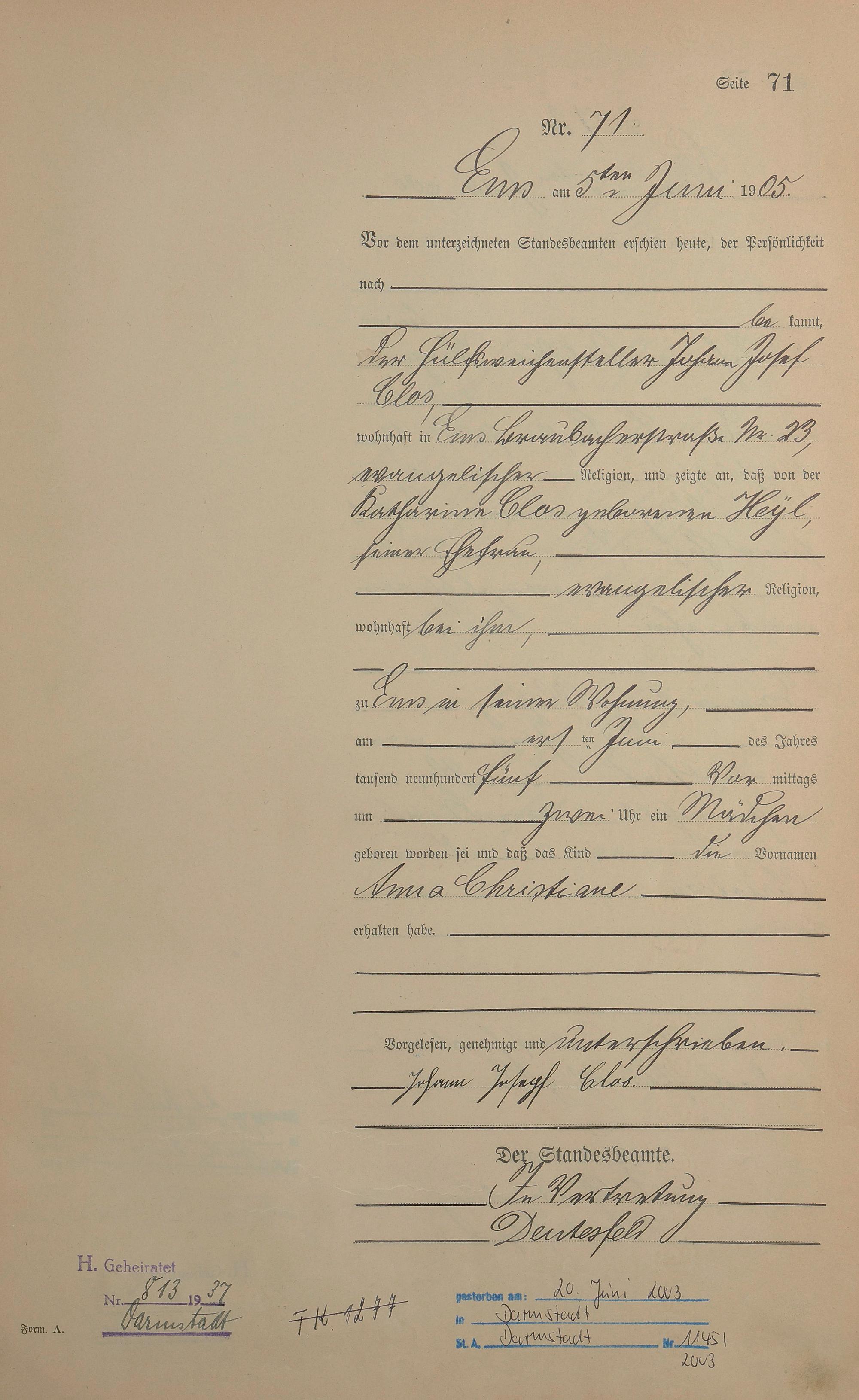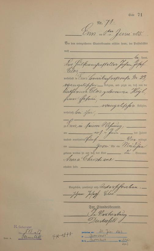 Geburtsregister 1905