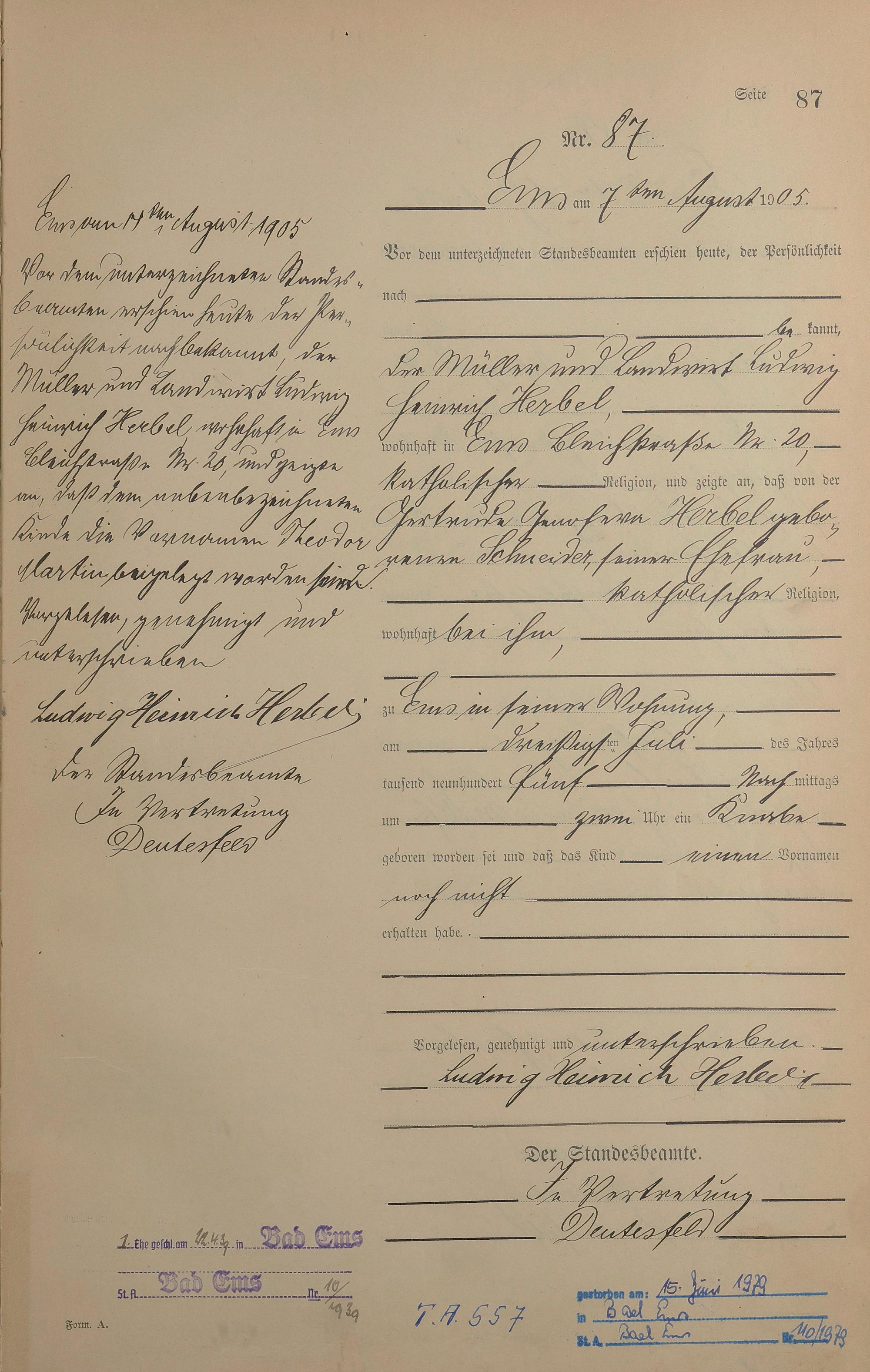 Geburtsregister 1905