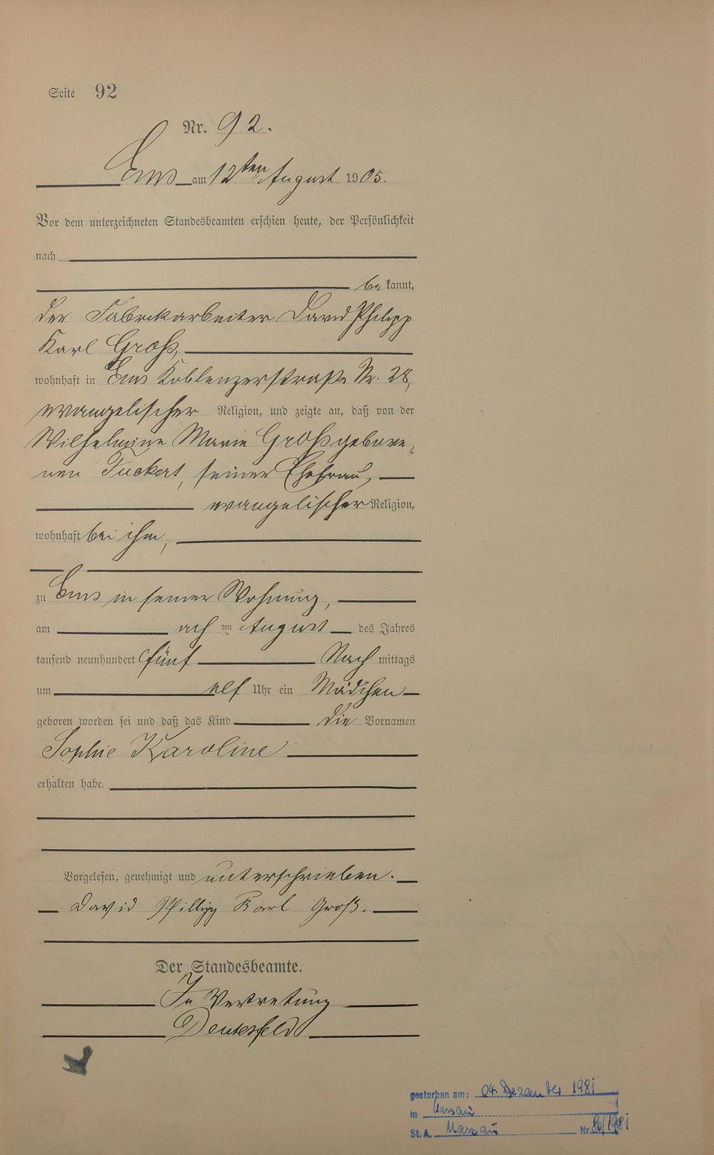 Geburtsregister 1905