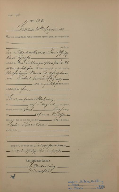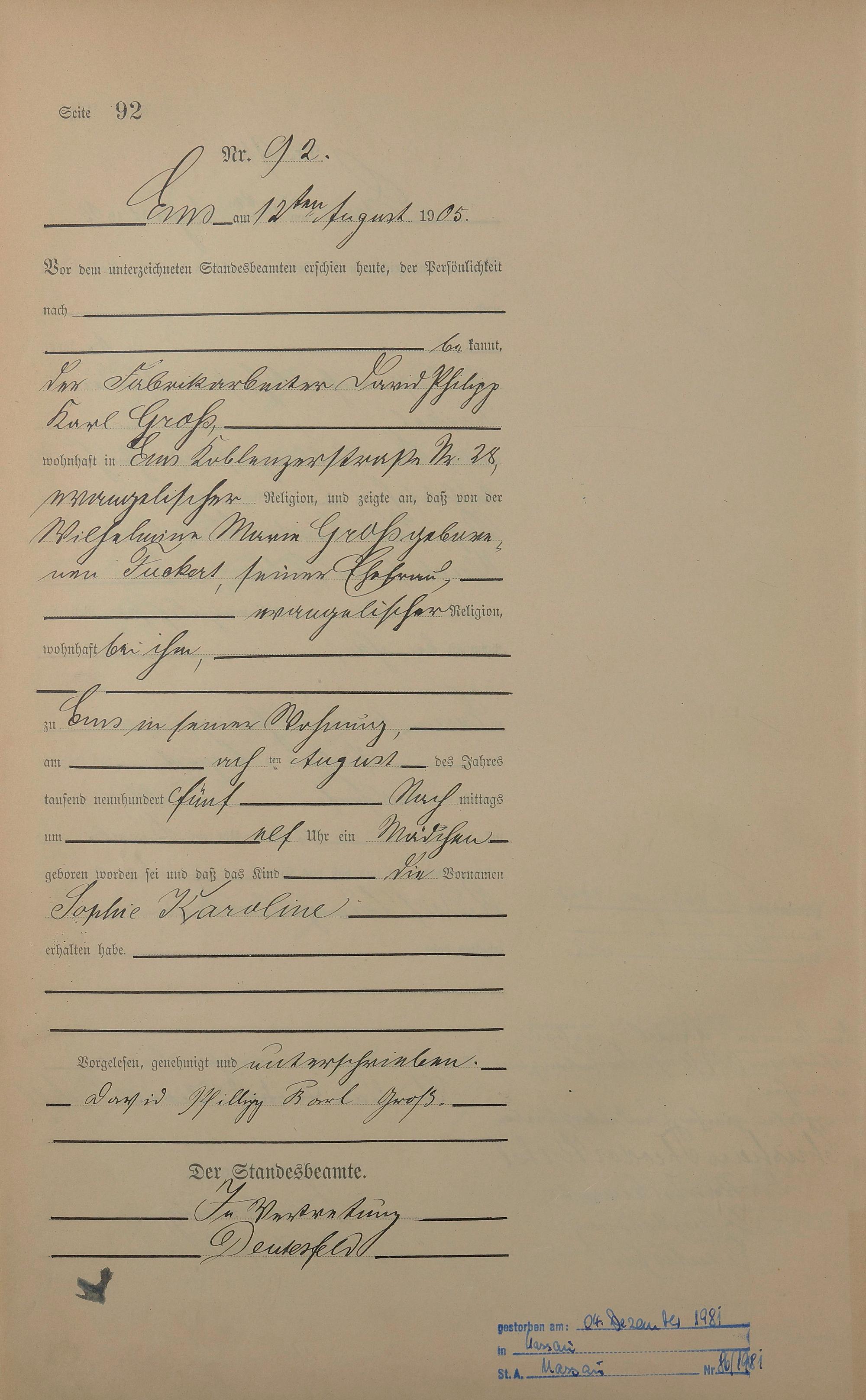 1281: Geburtsregister 1905