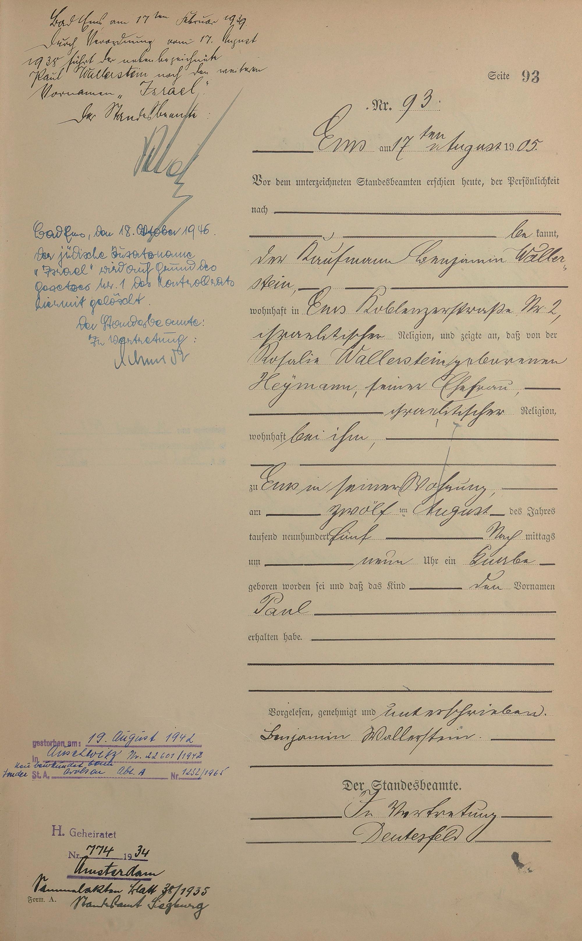 Geburtsregister 1905