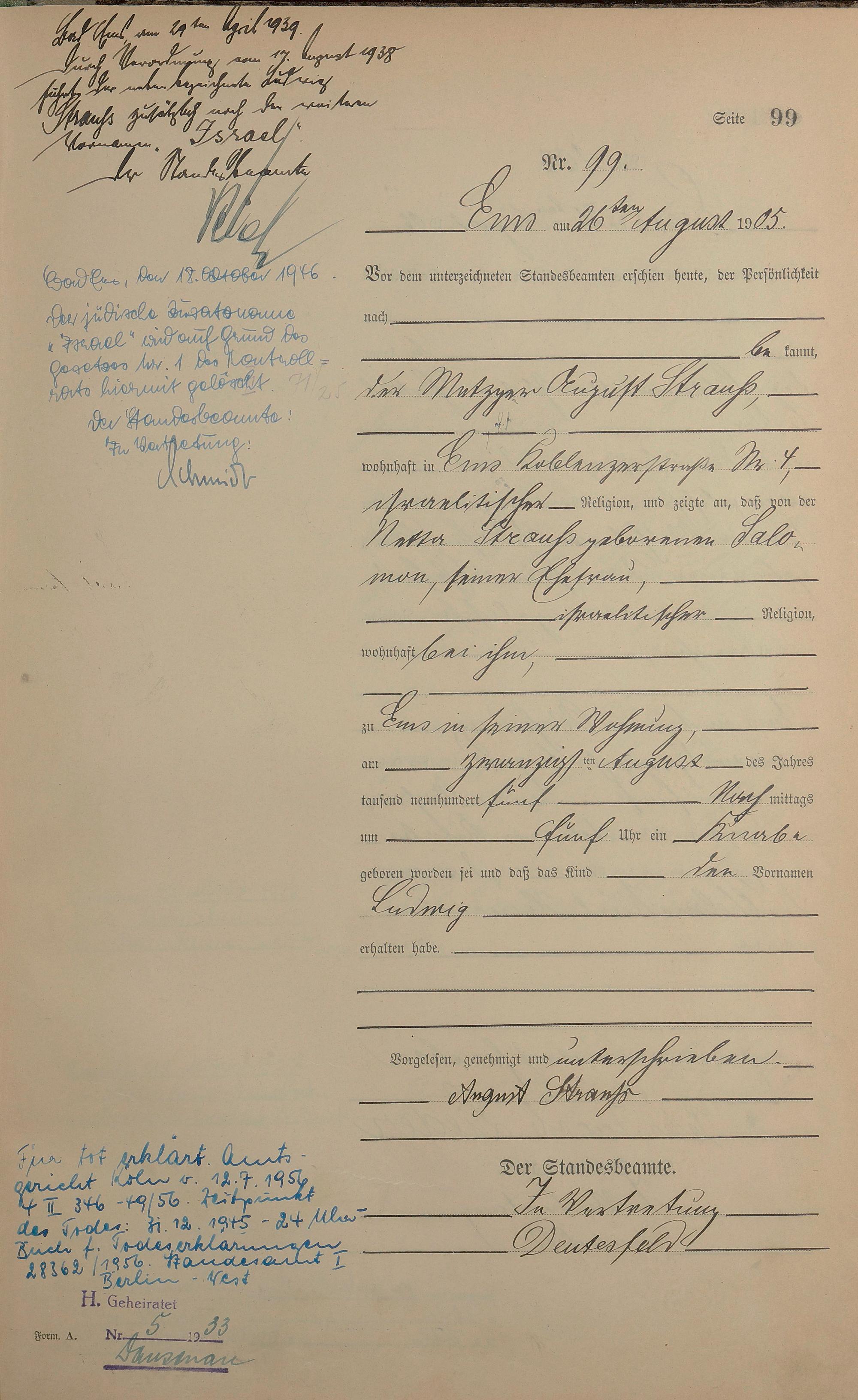 Geburtsregister 1905