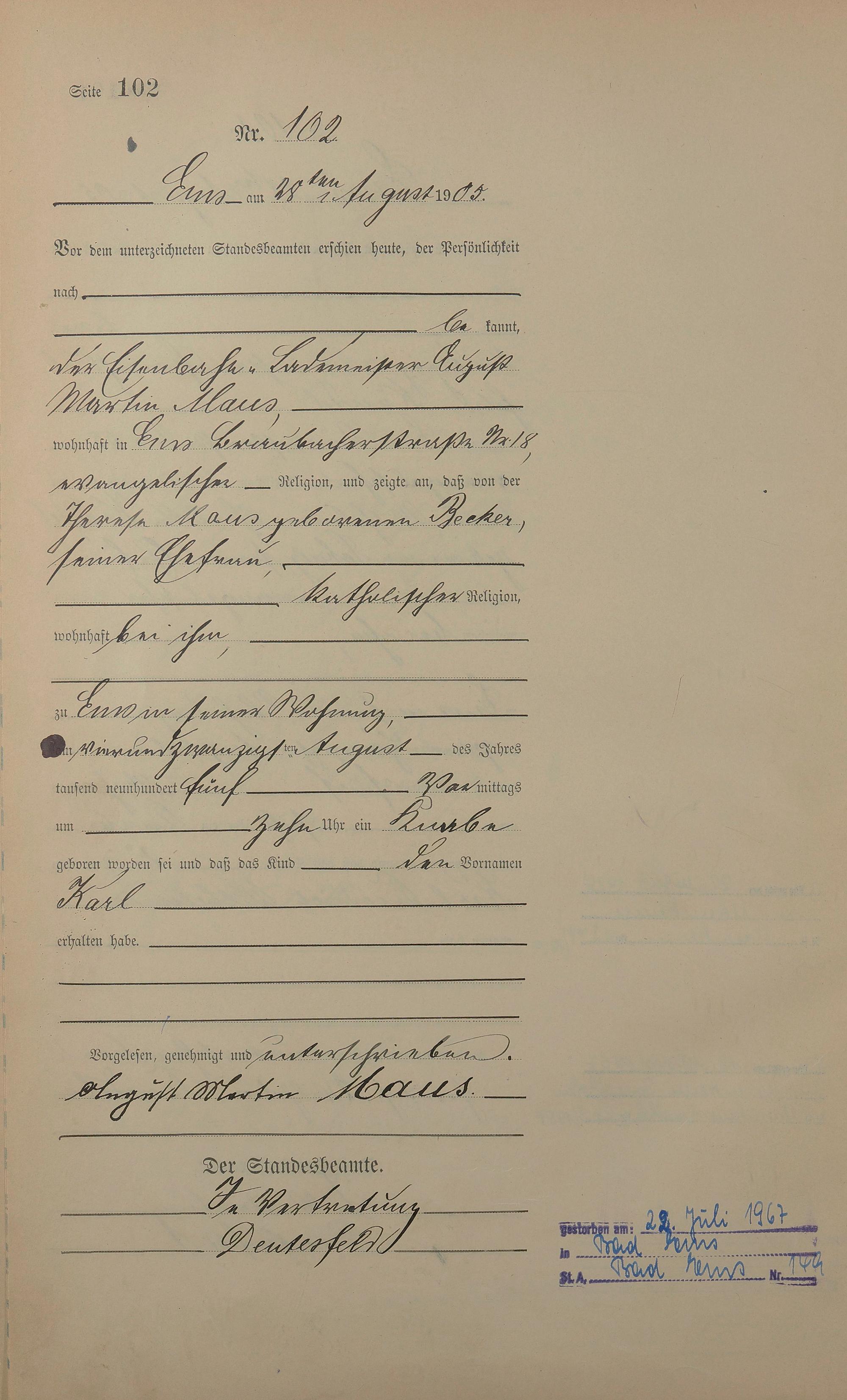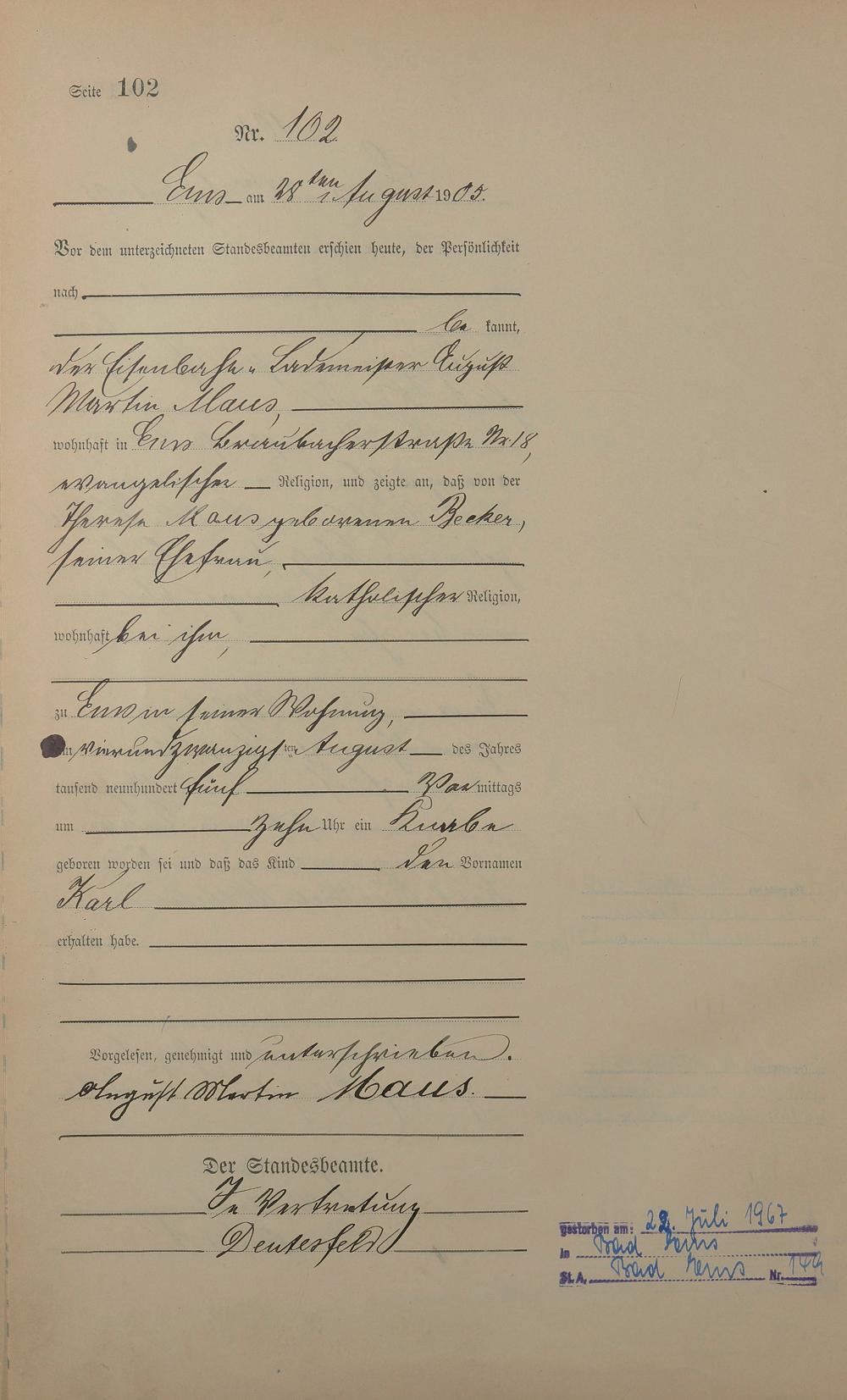 Geburtsregister 1905