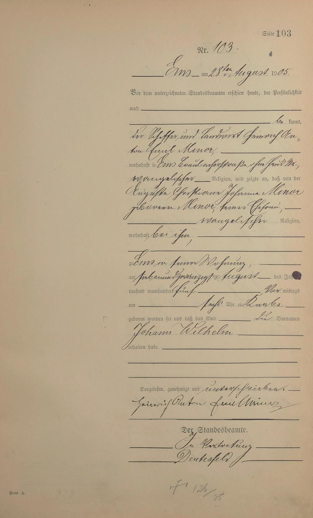 1281: Geburtsregister 1905