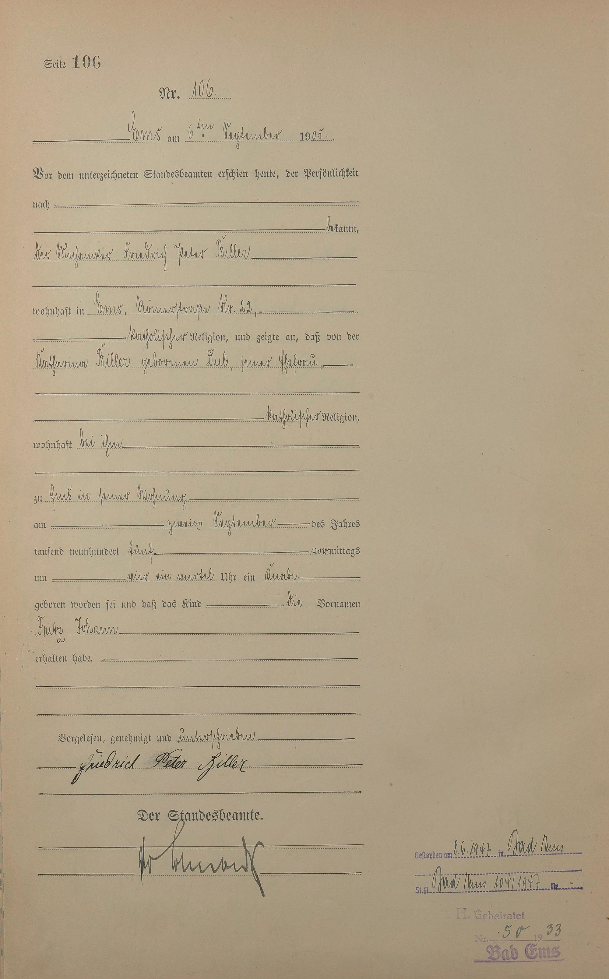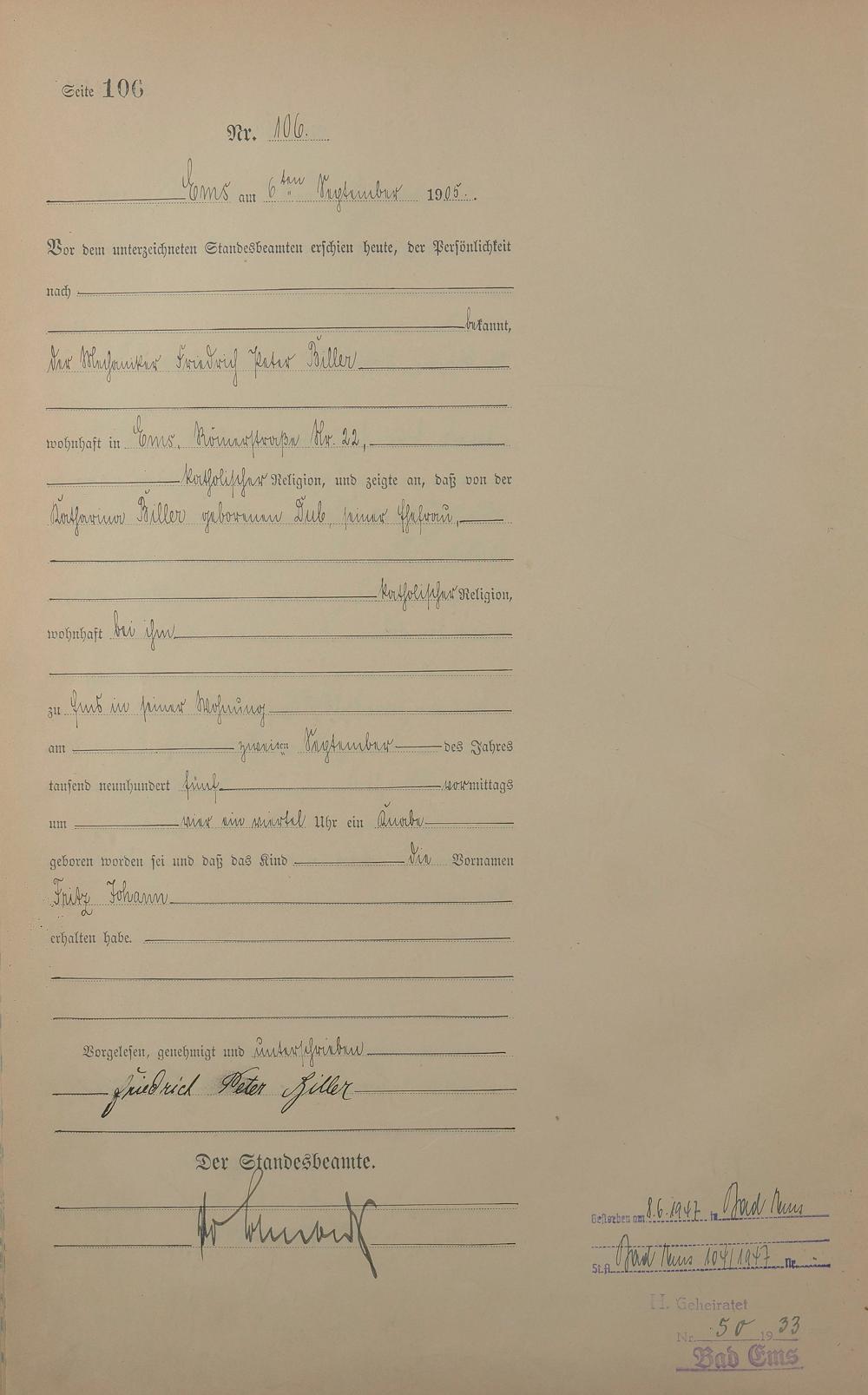 Geburtsregister 1905