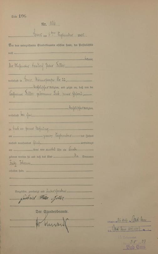 1281: Geburtsregister 1905