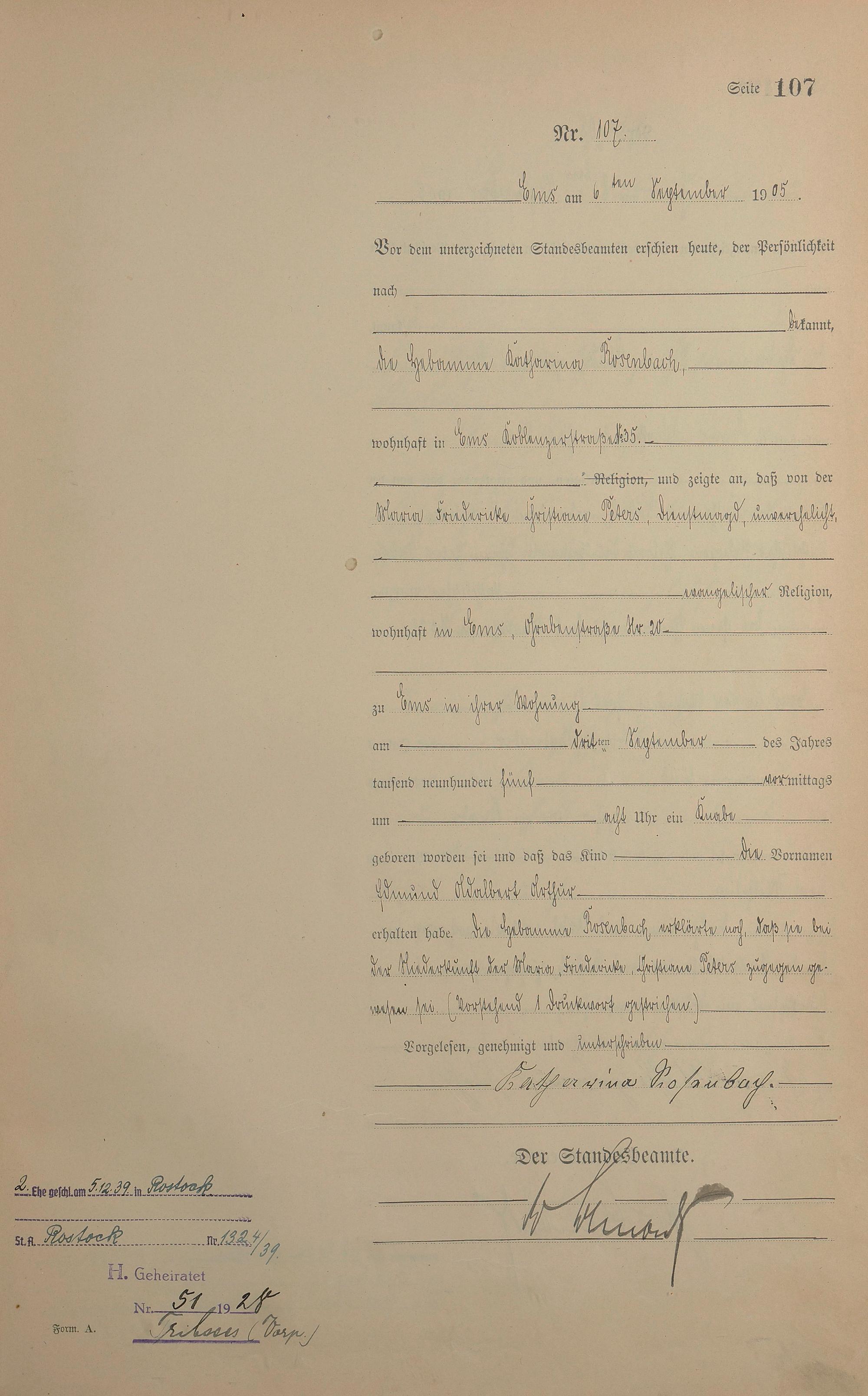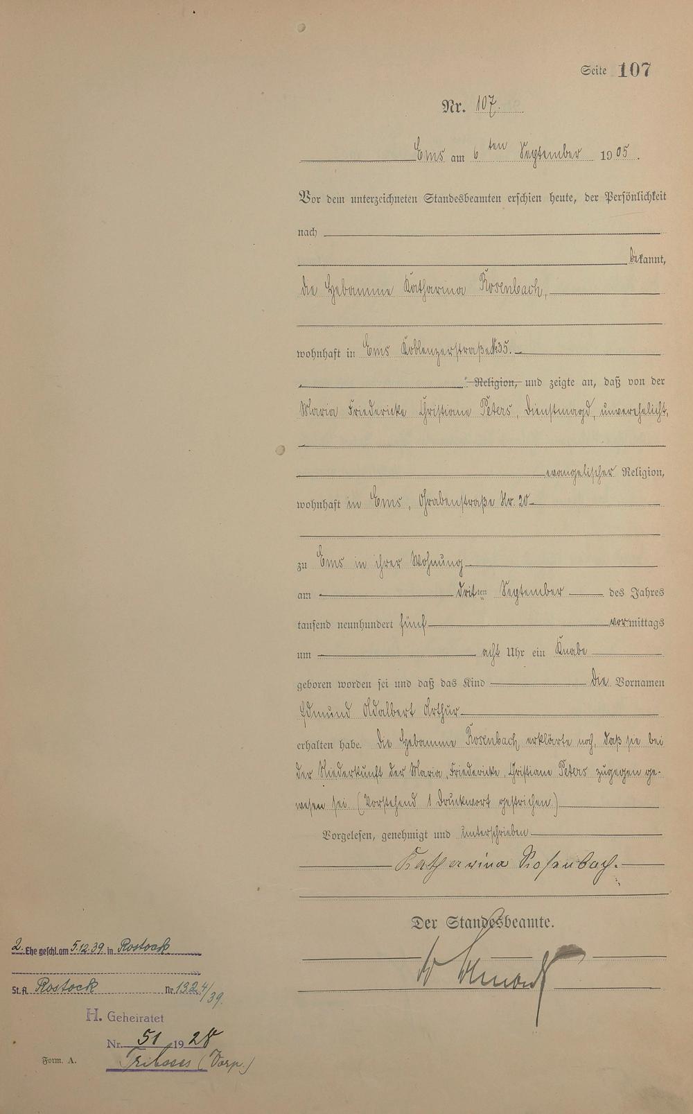 Geburtsregister 1905