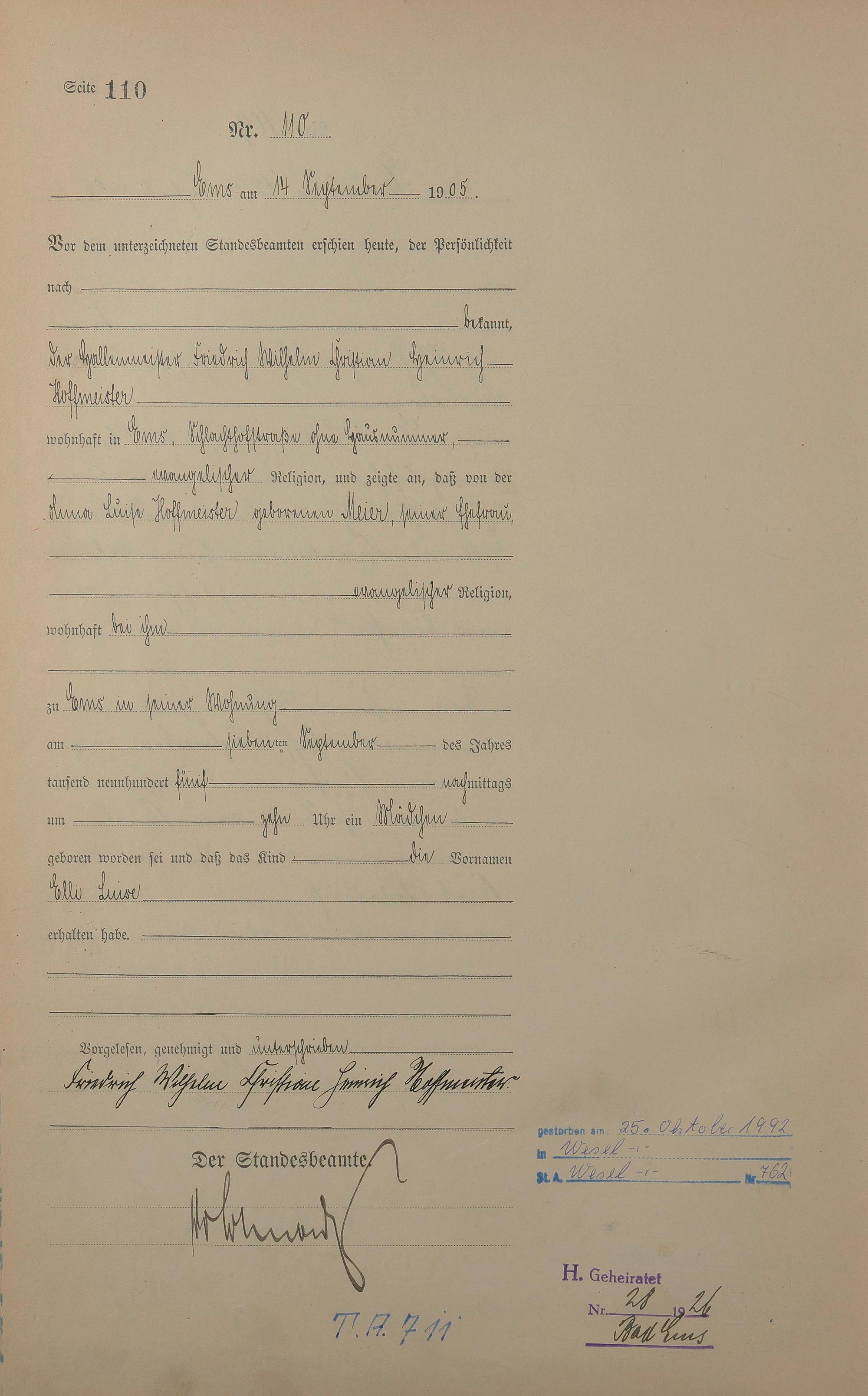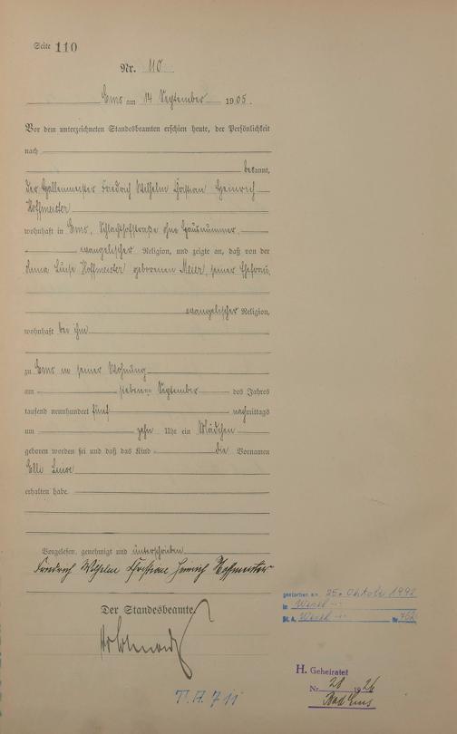 Geburtsregister 1905