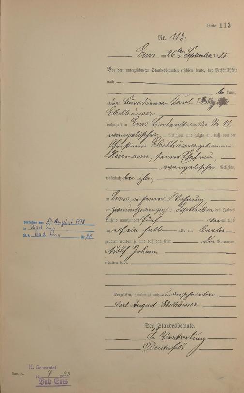 Geburtsregister 1905