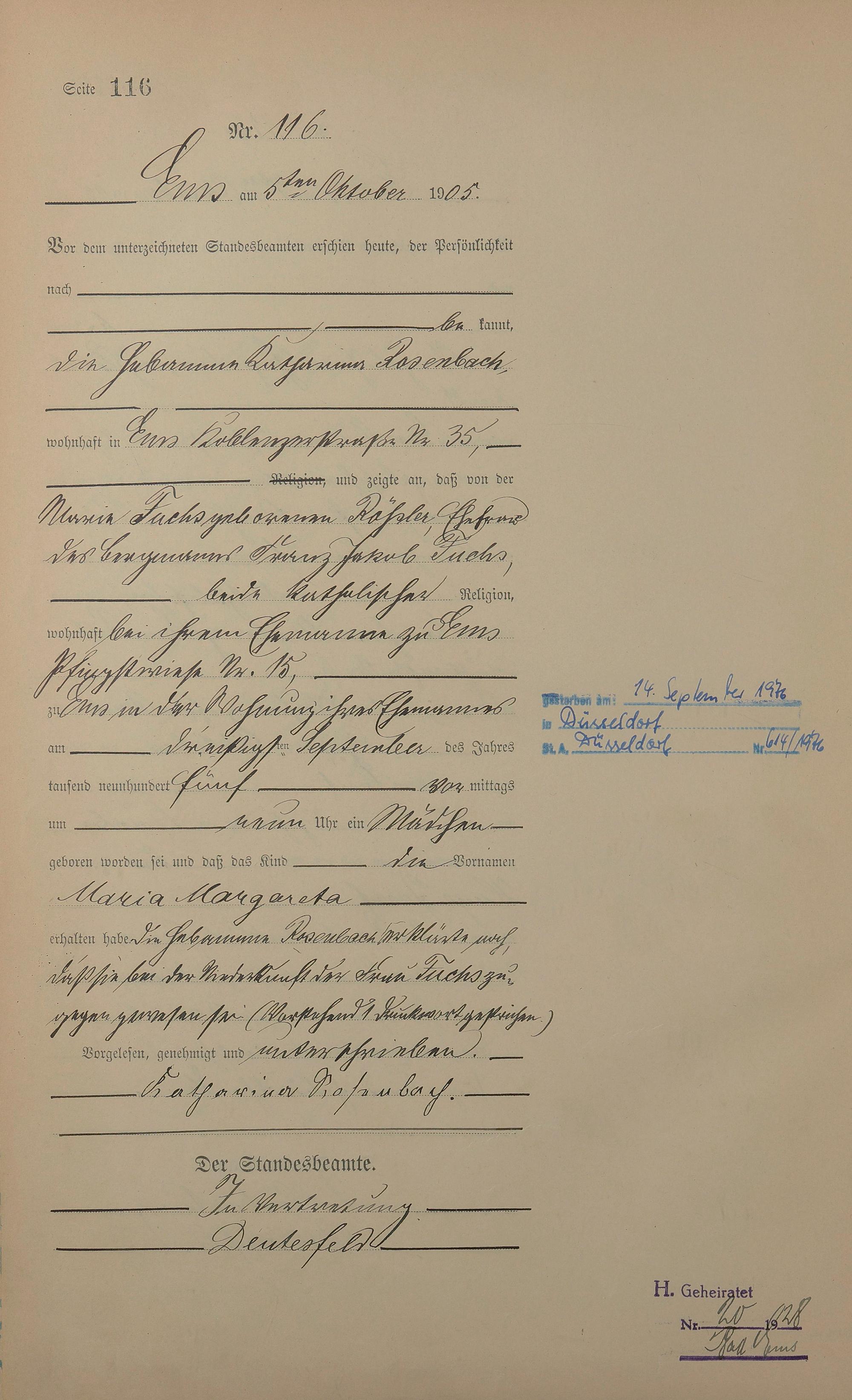 Geburtsregister 1905