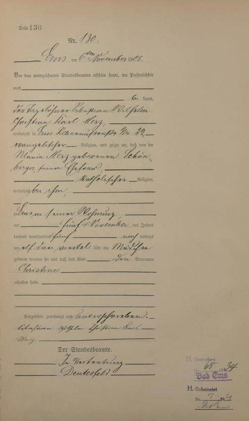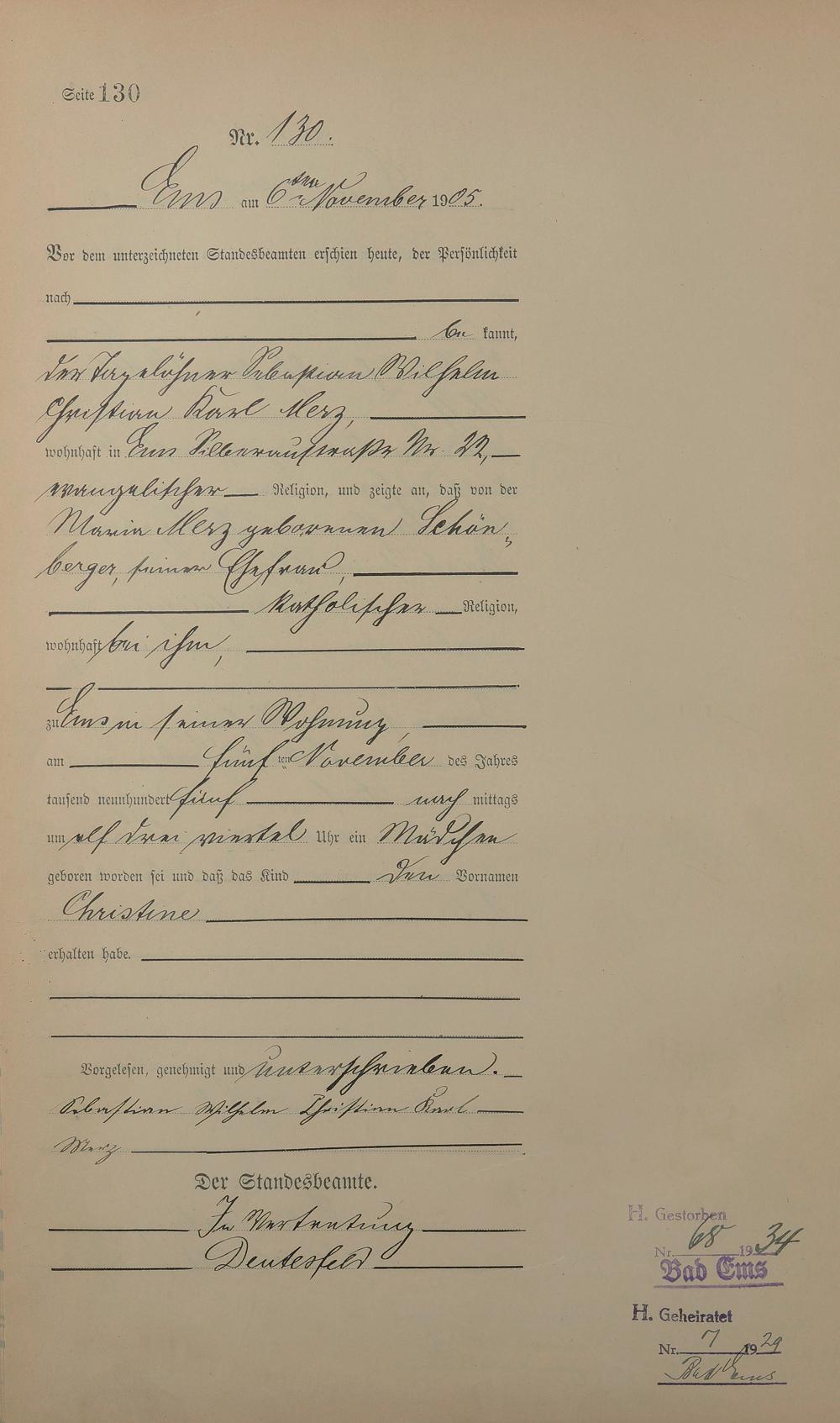 Geburtsregister 1905
