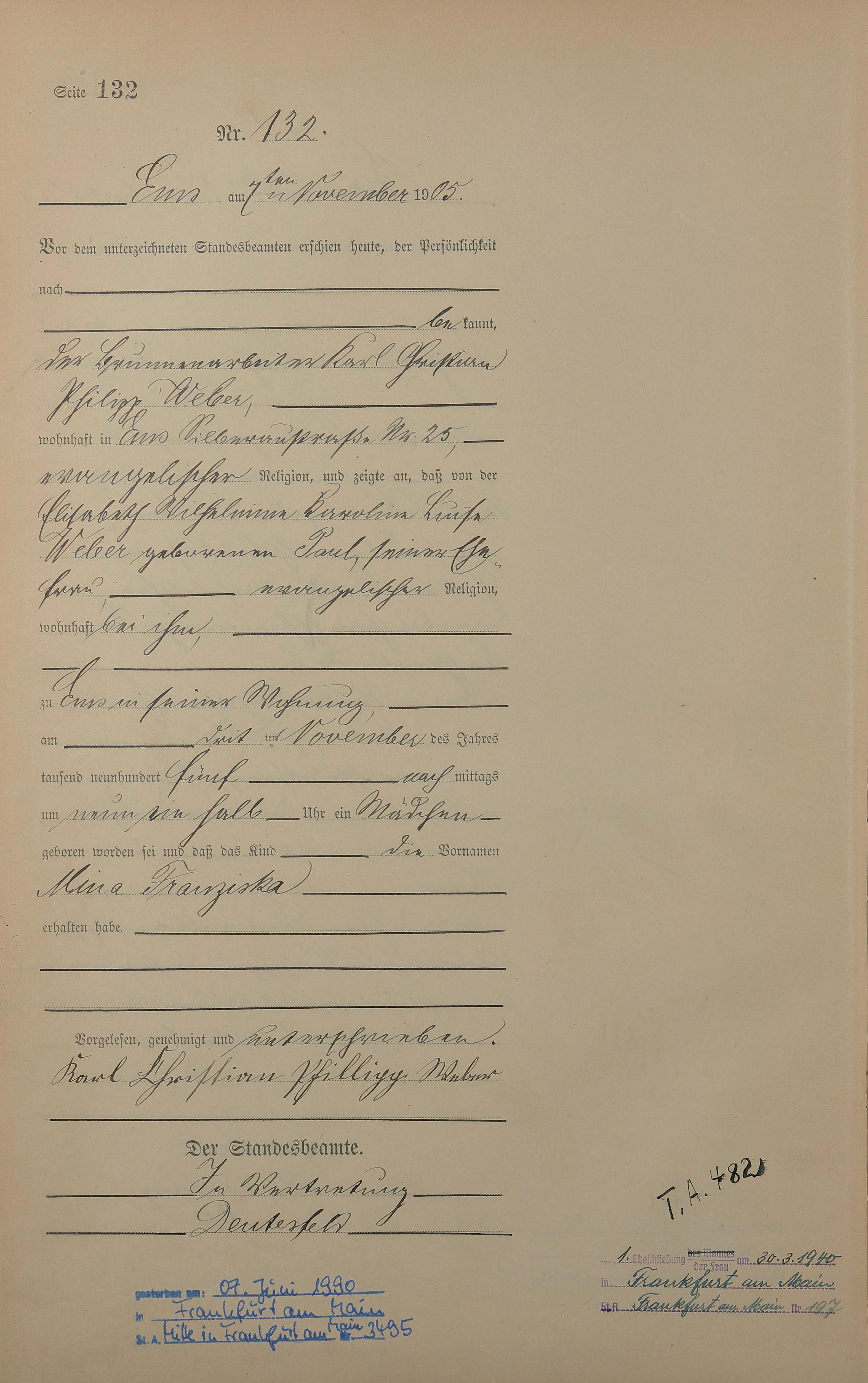 Geburtsregister 1905