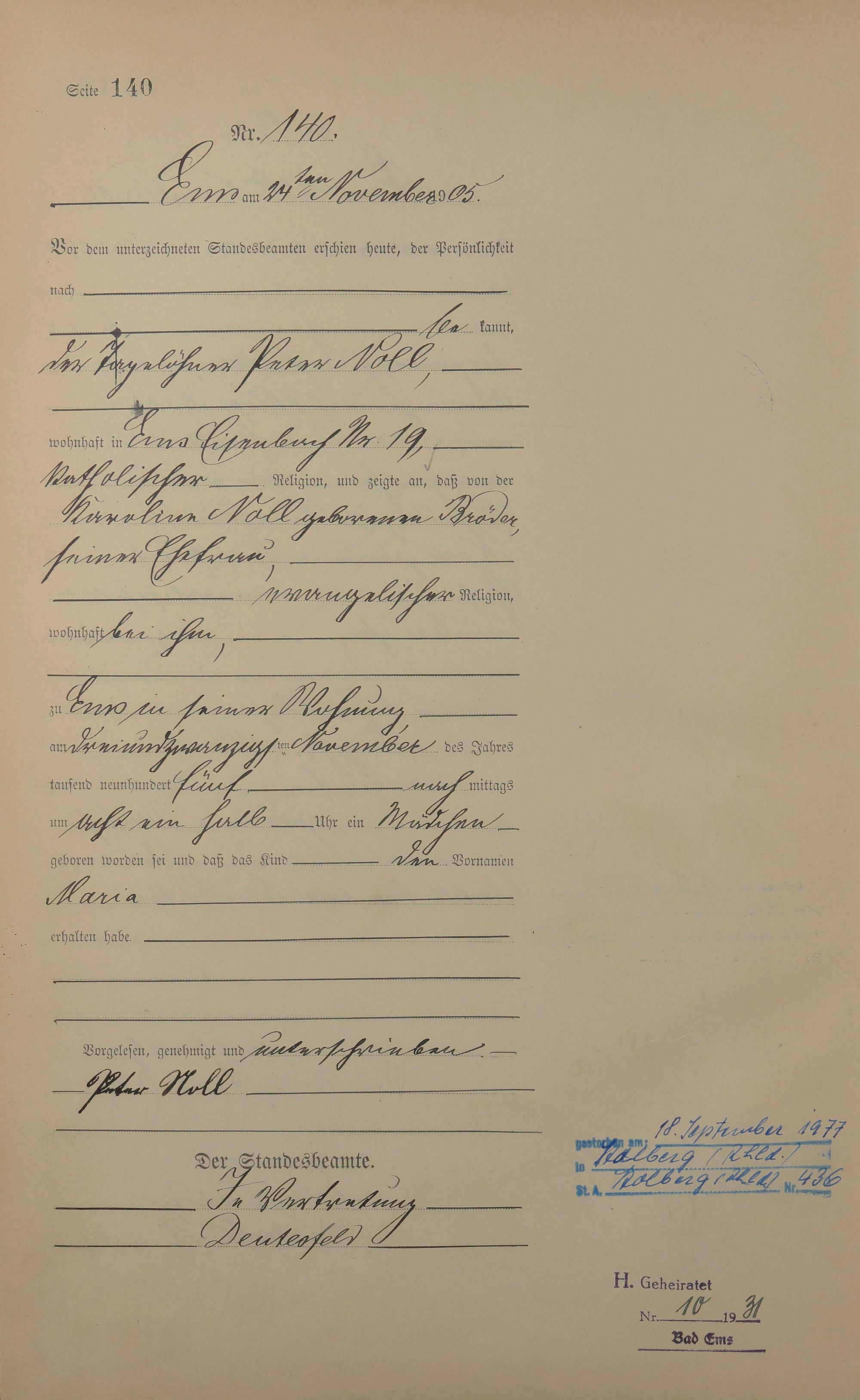 1281: Geburtsregister 1905
