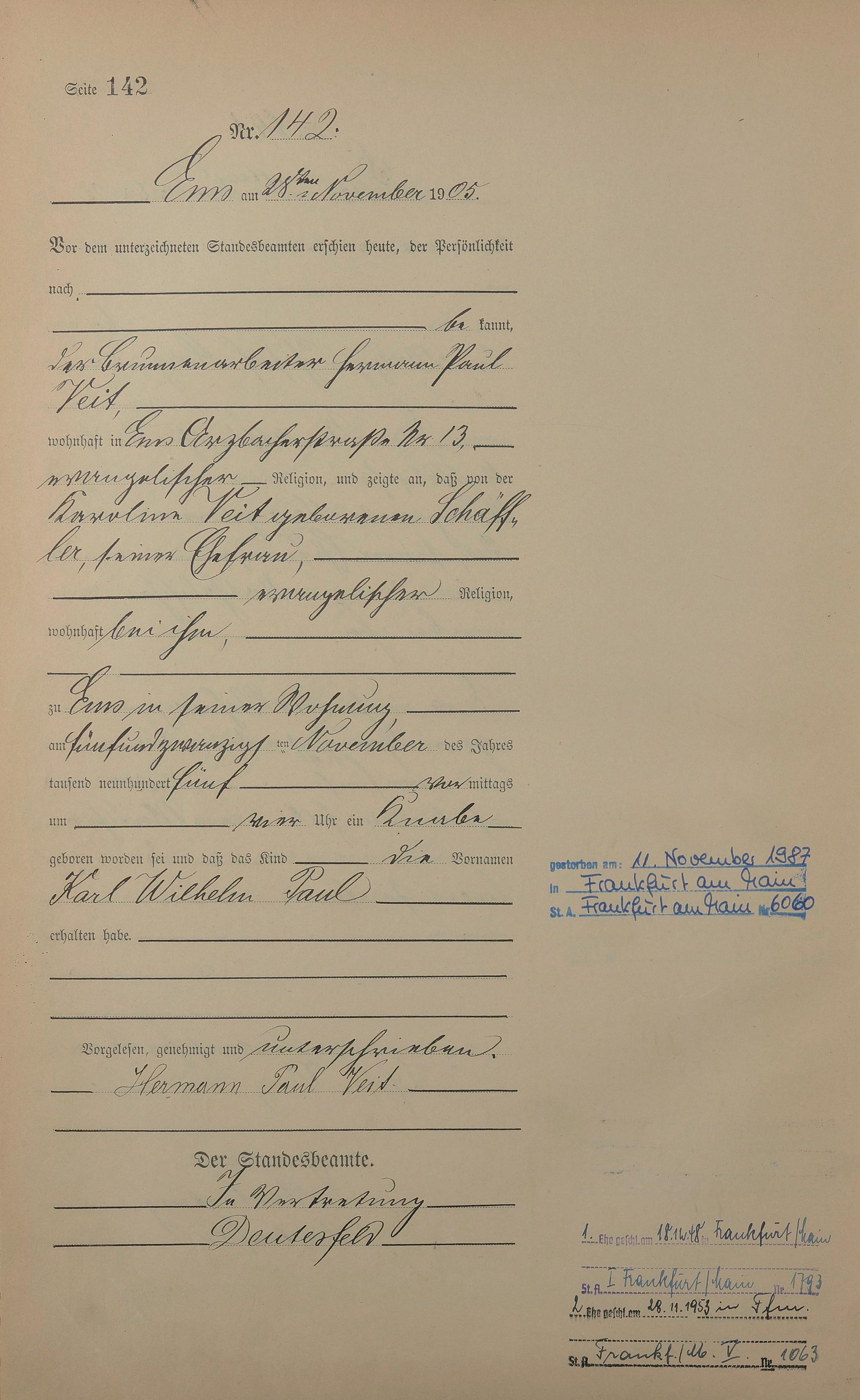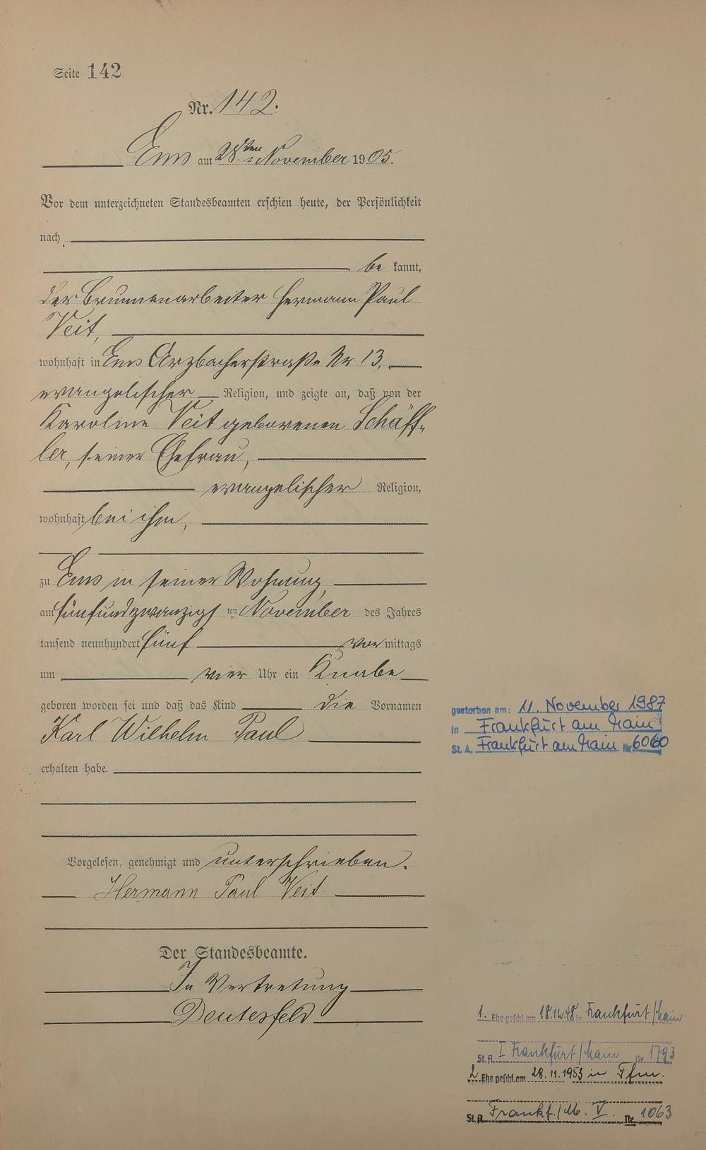 Geburtsregister 1905