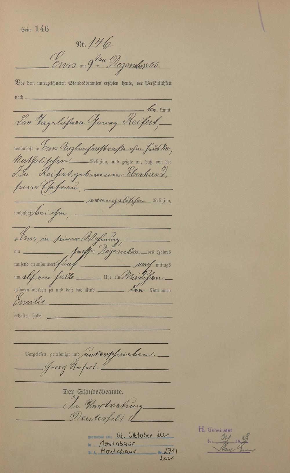 Geburtsregister 1905