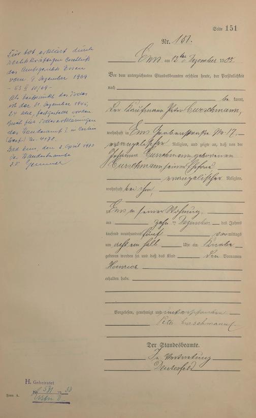 Geburtsregister 1905