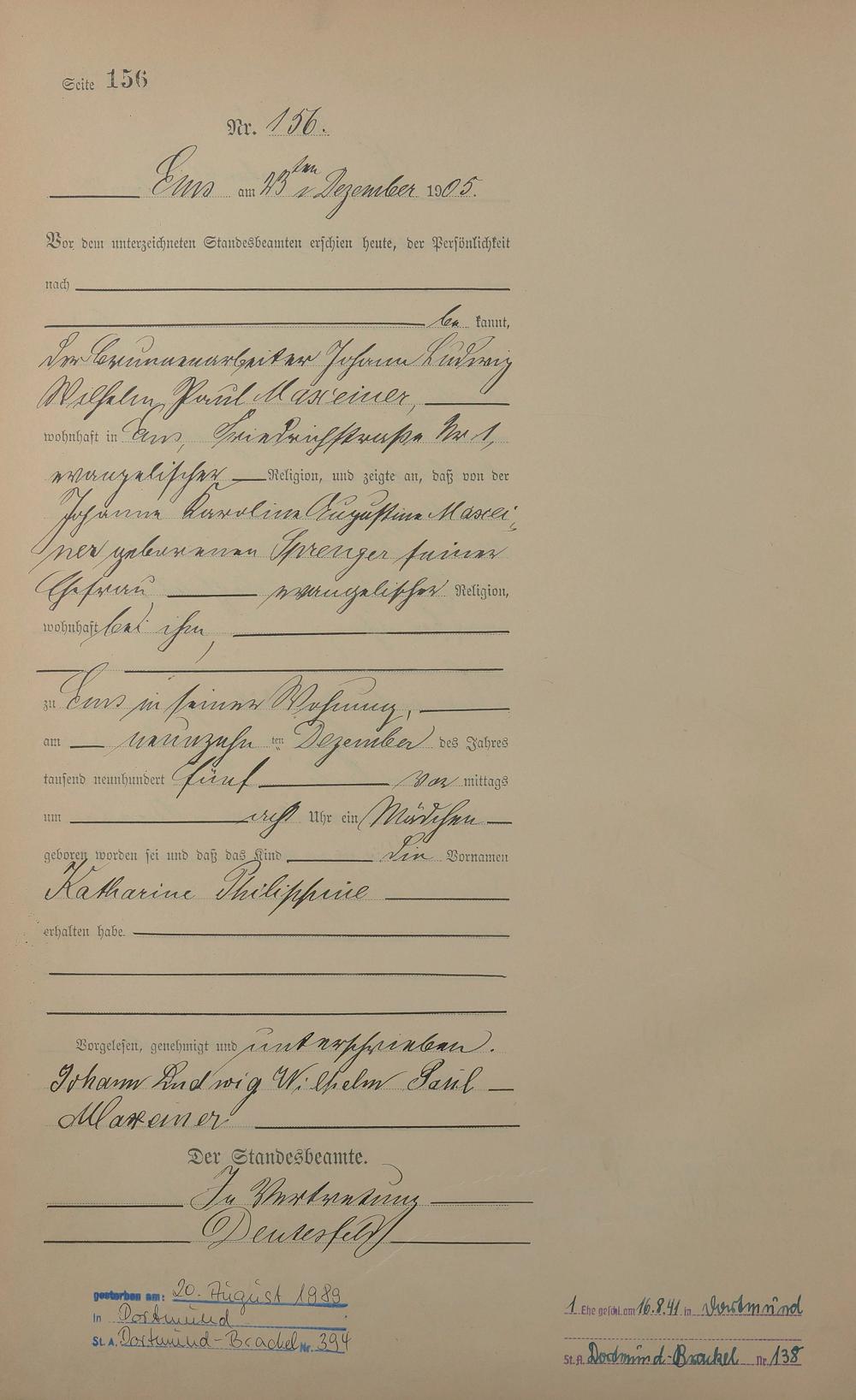 Geburtsregister 1905
