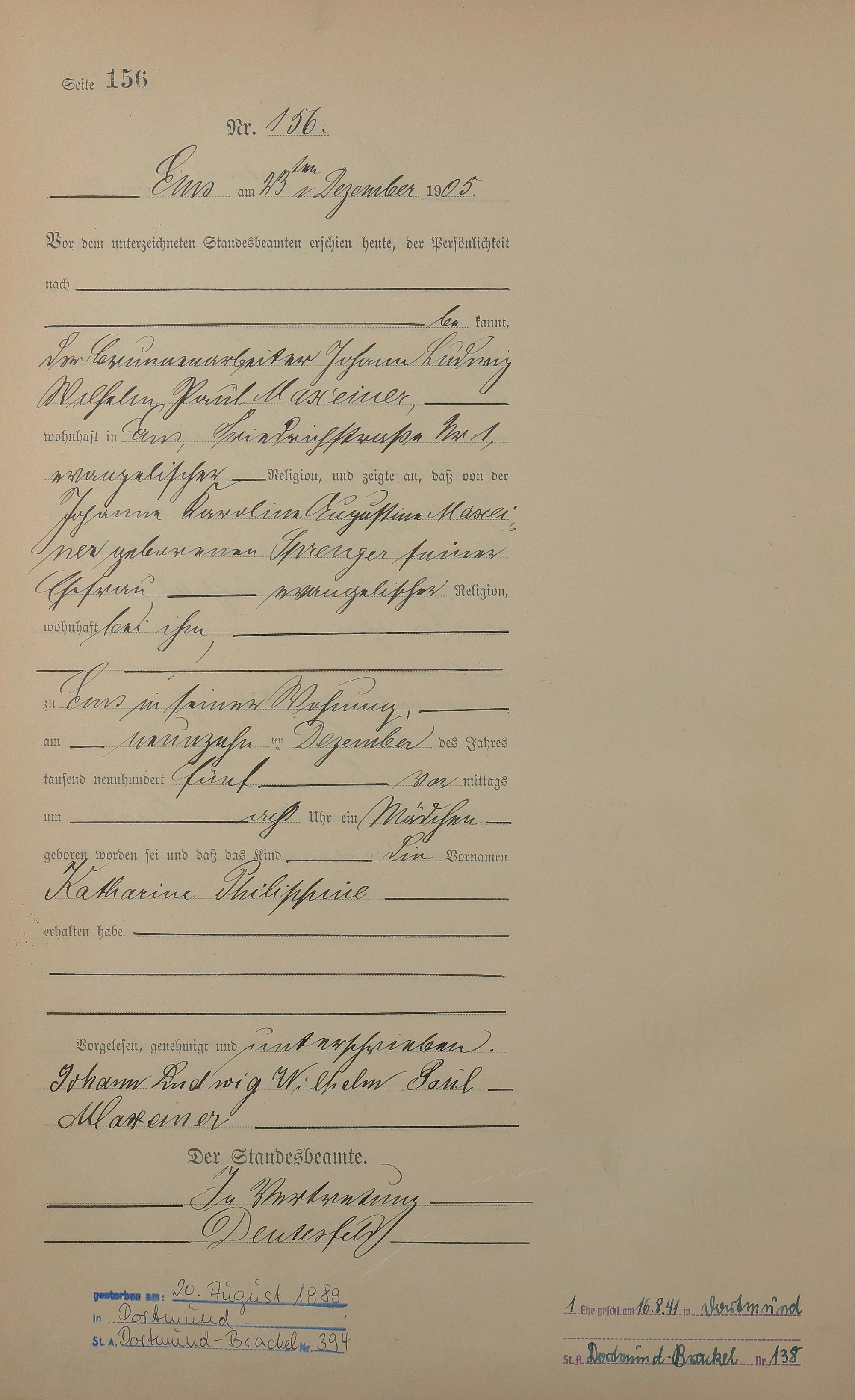 1281: Geburtsregister 1905