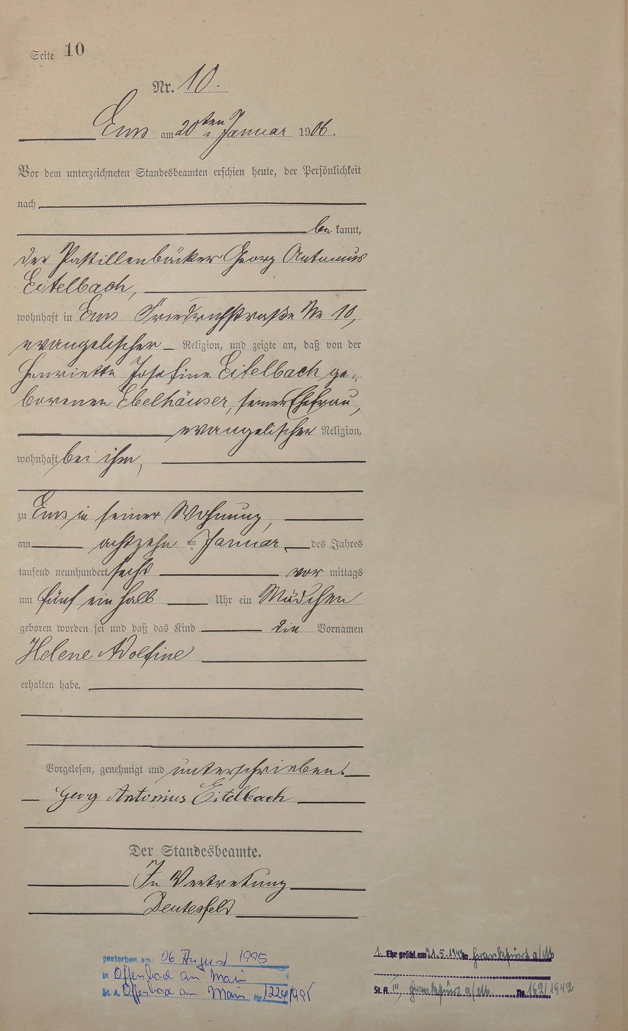 Geburtsregister 1906