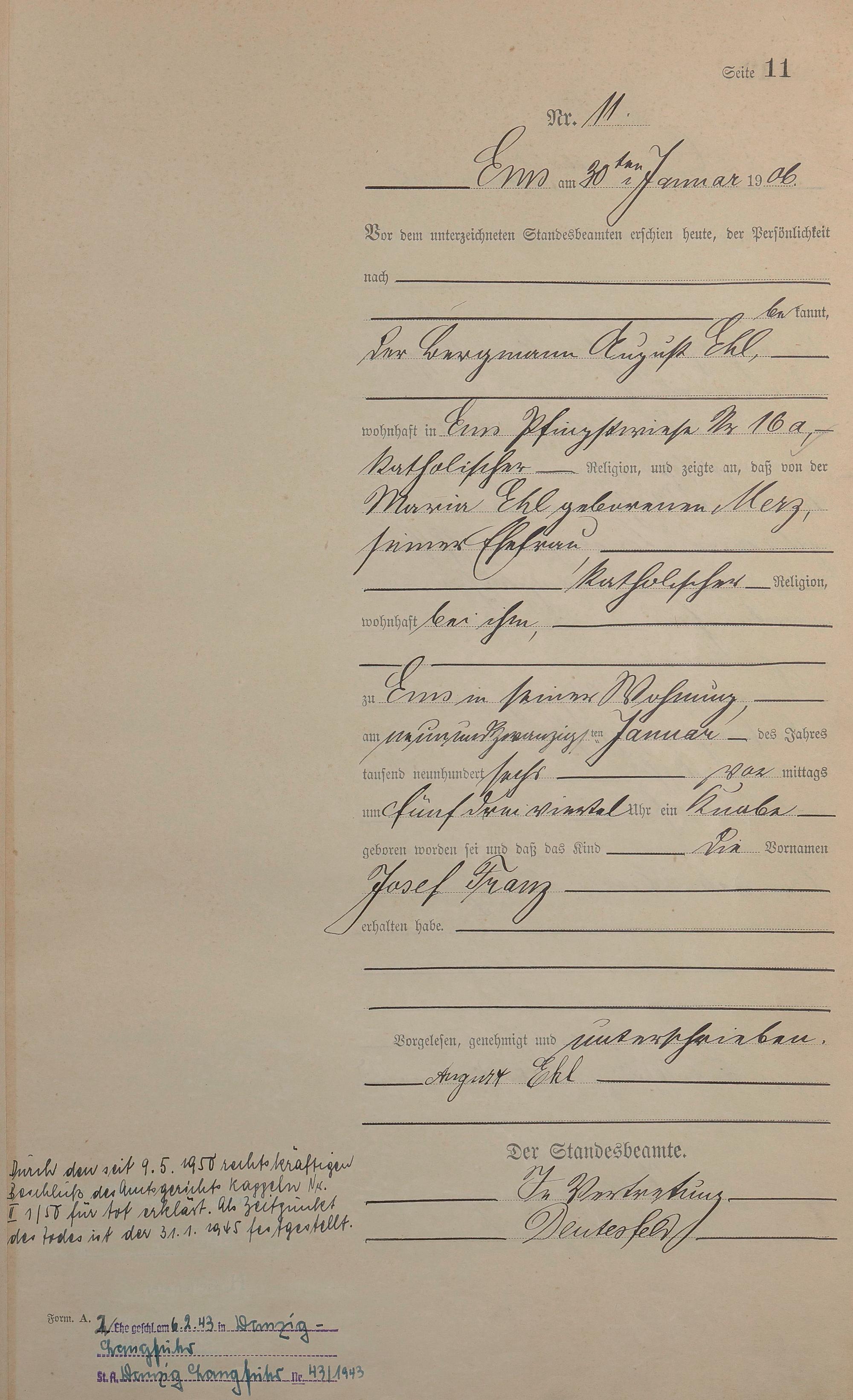Geburtsregister 1906