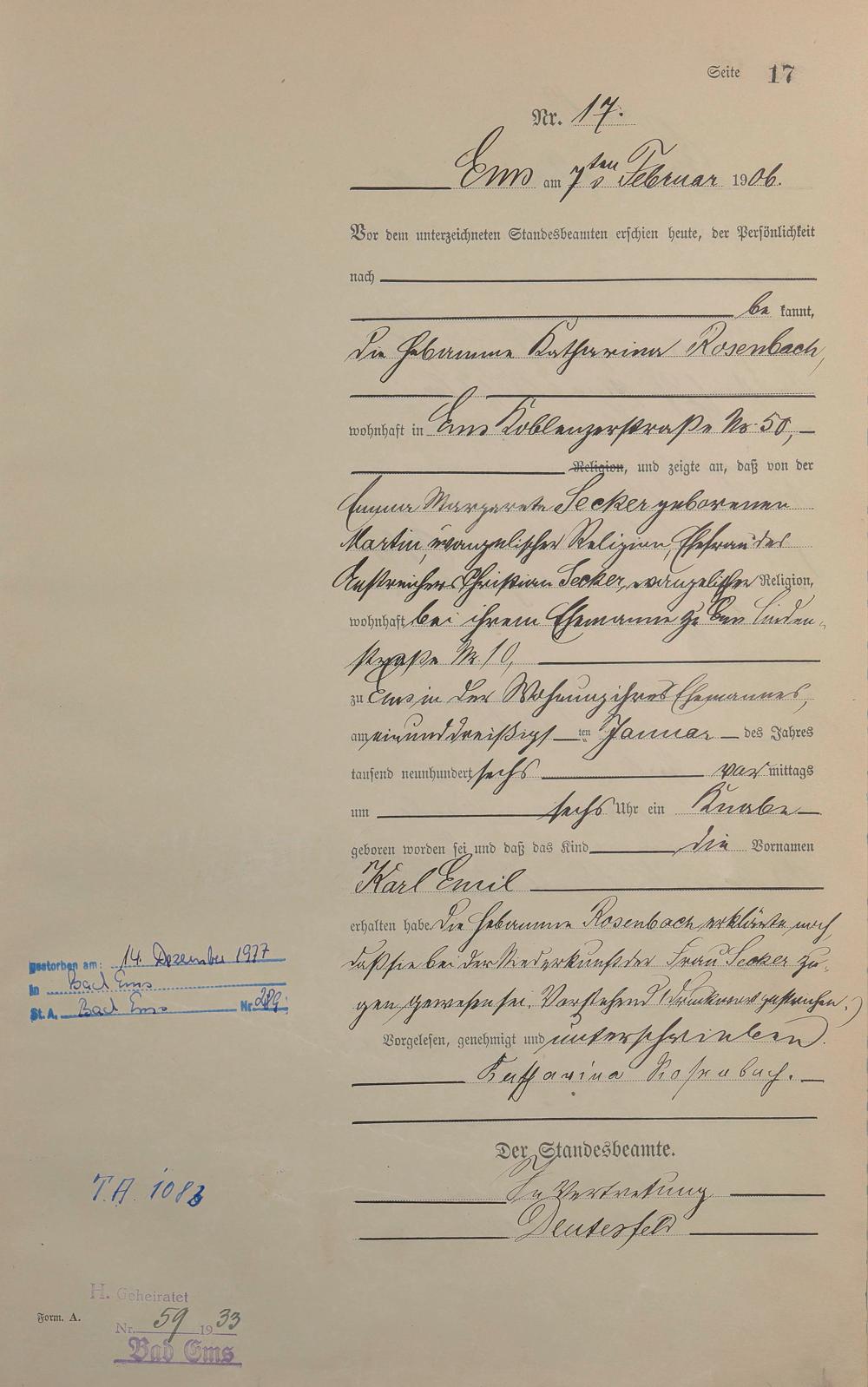 Geburtsregister 1906