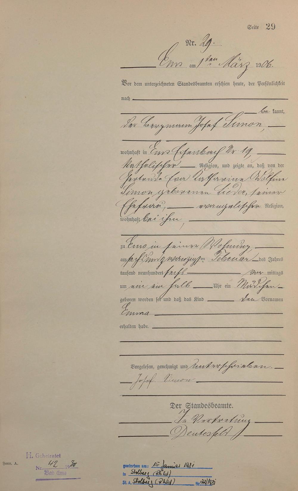 Geburtsregister 1906