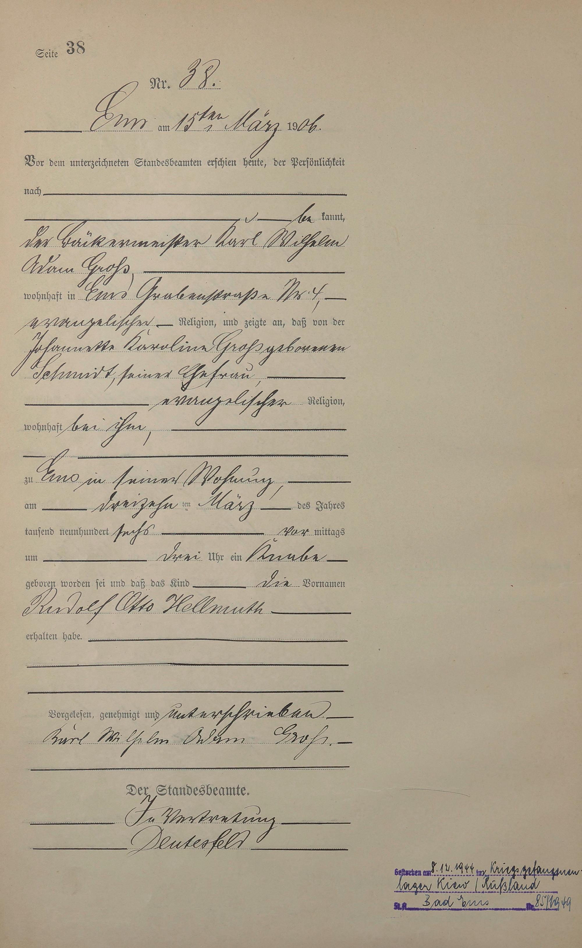 Geburtsregister 1906